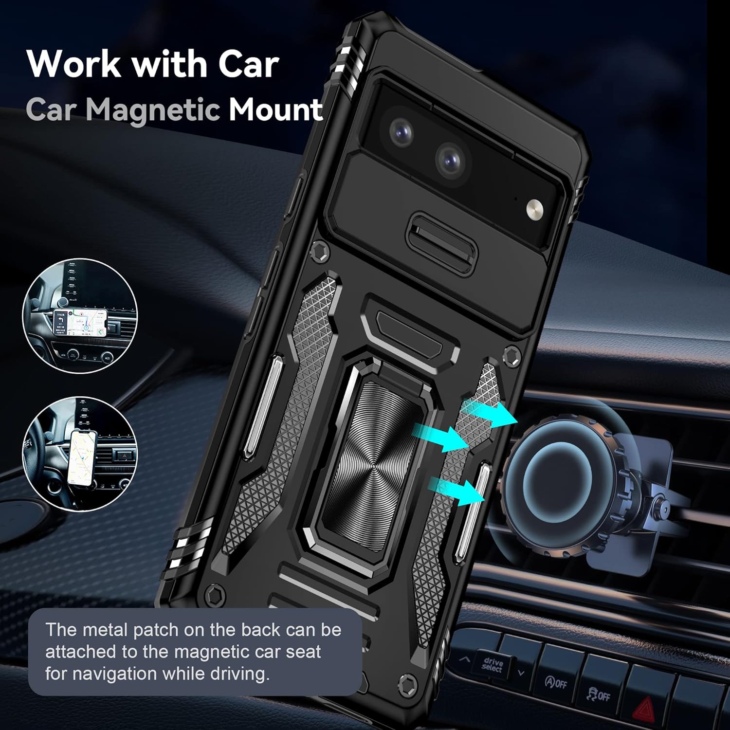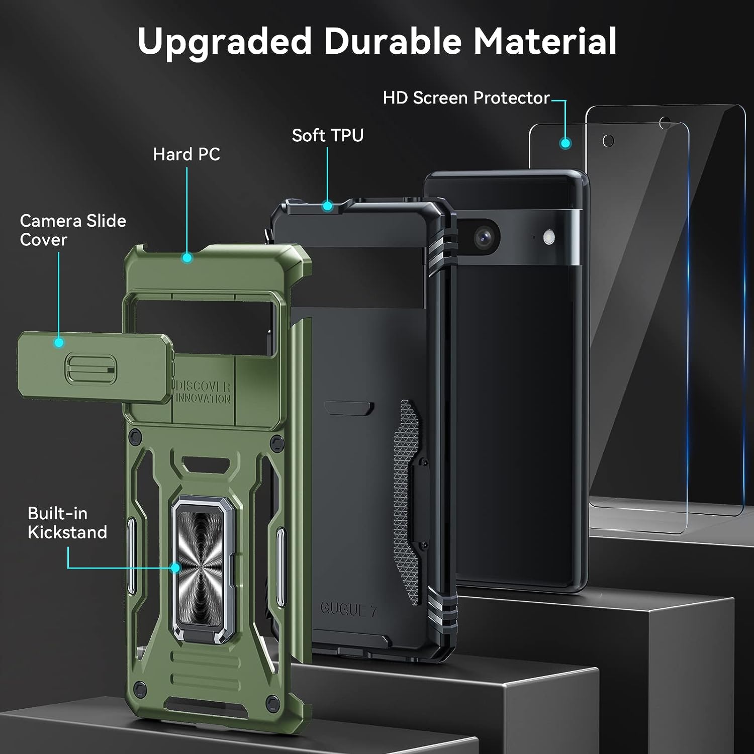 CloudValley Designed for Pixel 7 Case with Screen Portector [2 Pack], Slide Camera Cover with 360° Rotate Magnetic Kickstand Car Mount Protective Case for Pixel 7 6.3 Inch (2022) - Green