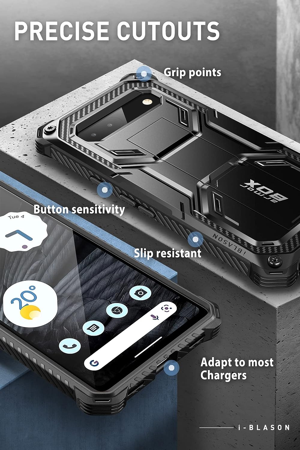 • Elevated bezels on pixel 7a case keep your touchscreen and camera lens free from damaging surfaces; precise cutouts allow easy access to all pixel 7a ports and function.