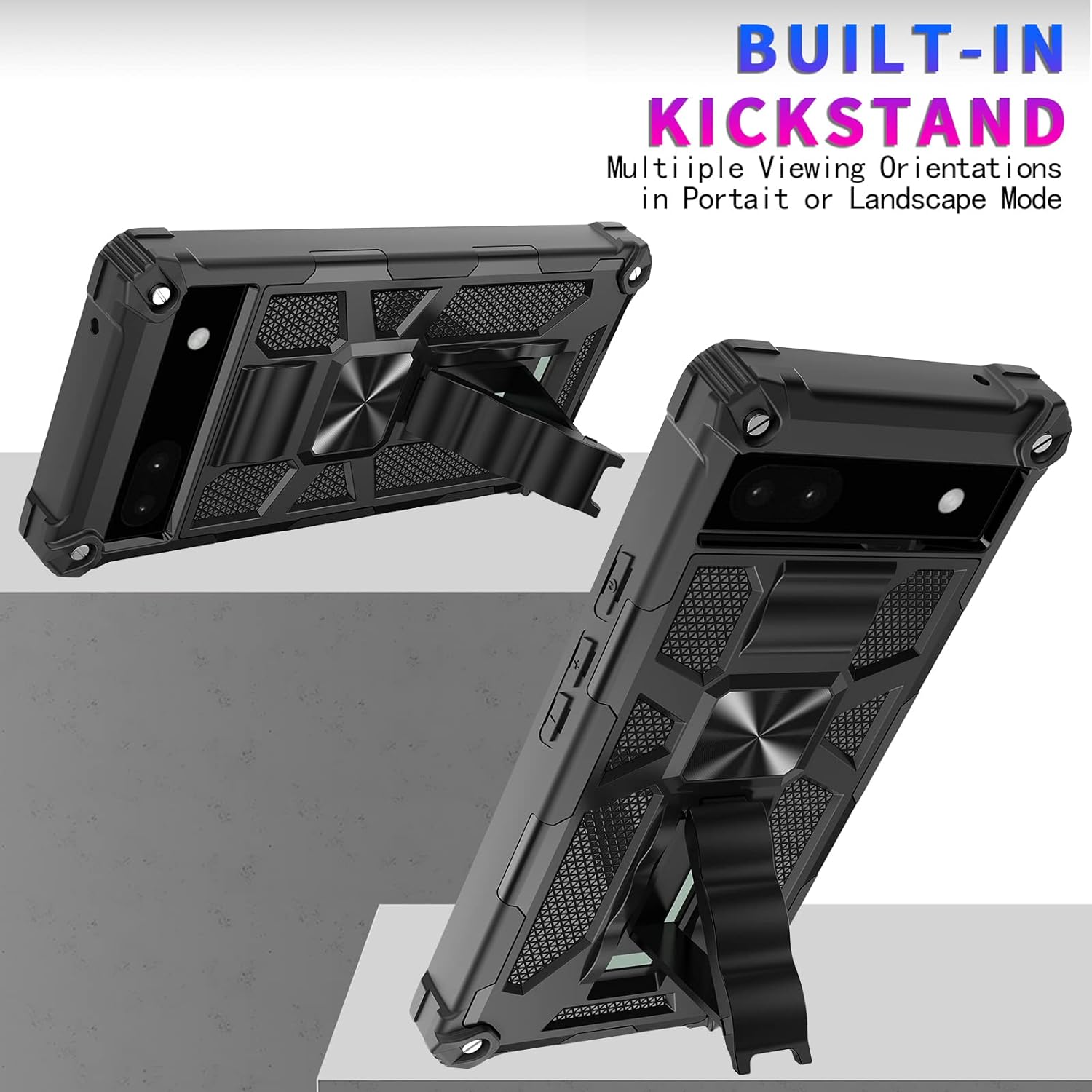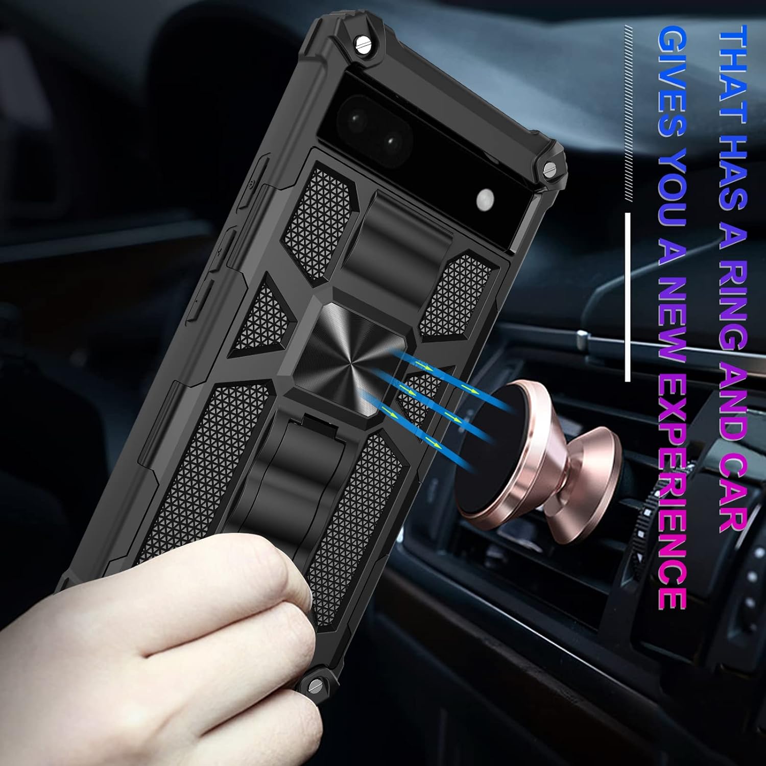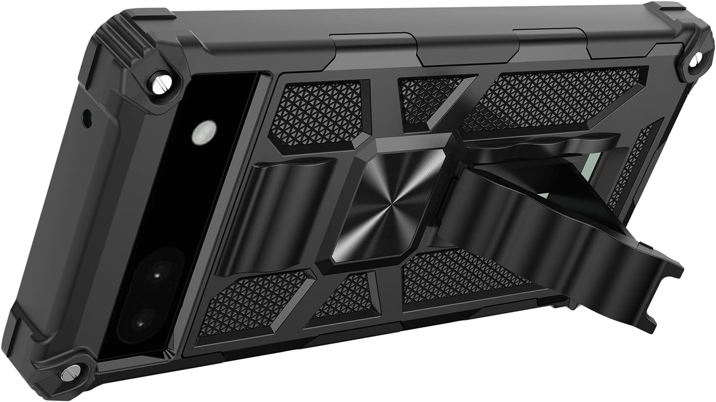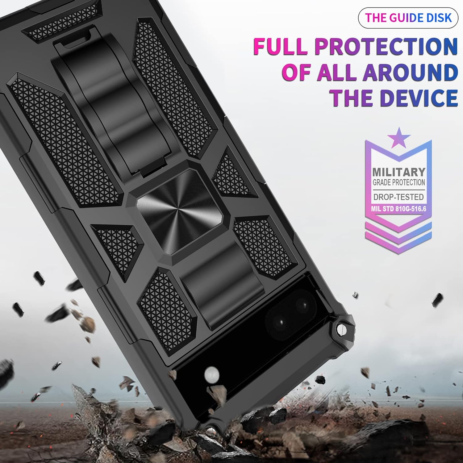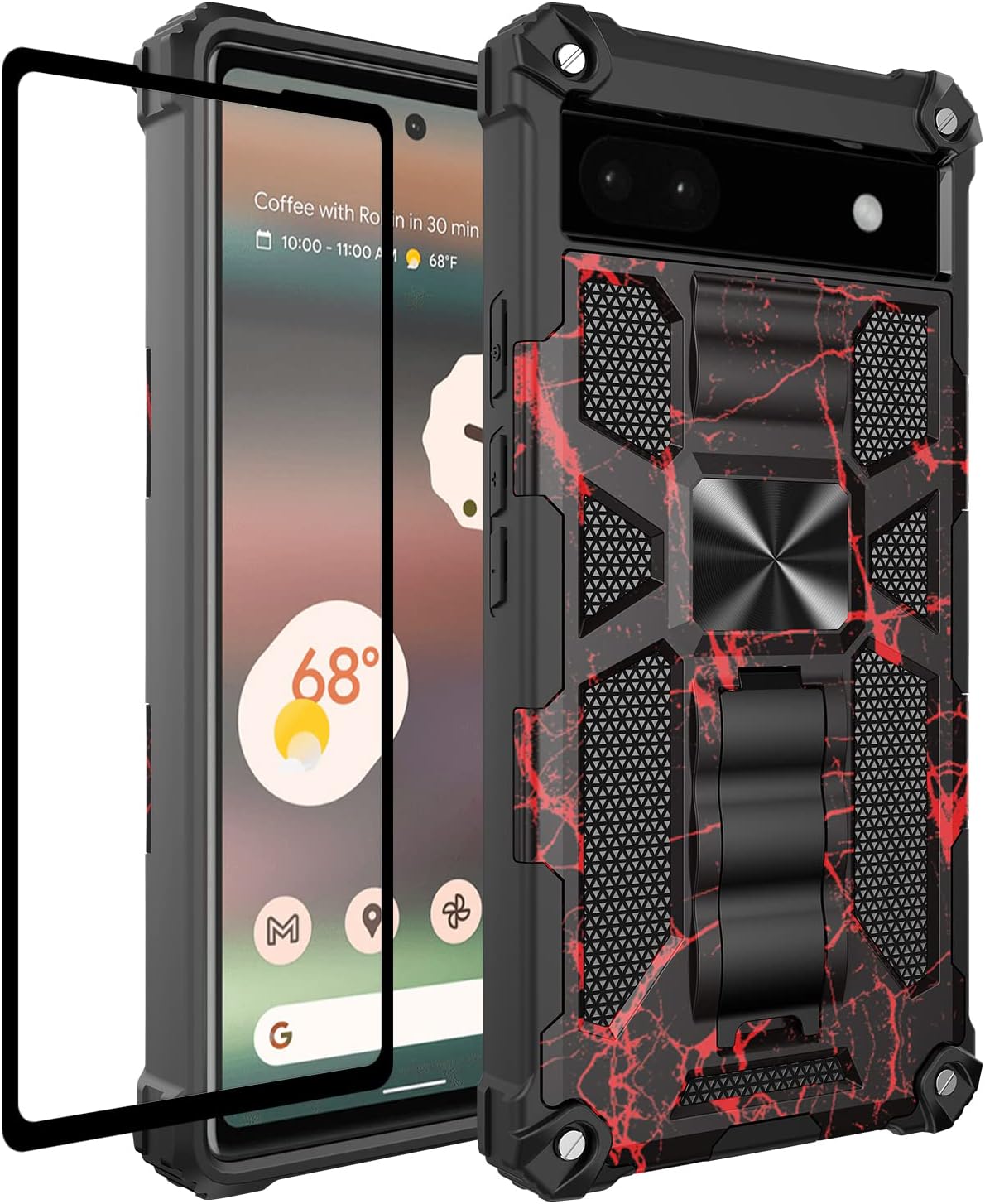 YOOBSTAR For GOOGLE PIXEL 7 CASE,PIXEL 7 5G (2022) w/Tempered Glass Screen Protector(Full Coverage) Heavy Duty Shockproof [Military-Grade][Built-in Kickstand] Protective Cover For Man Red Black Marble