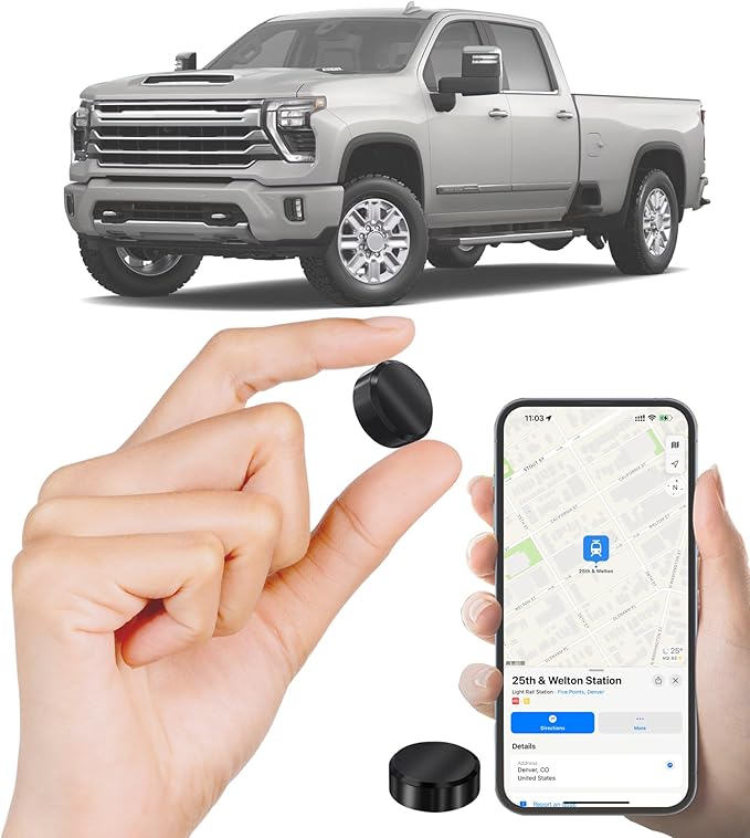 GPS Tracker for Vehicles - No Monthly Fee, Real-Time Location Tracking with App Control, Long Battery Life, Compact Design, Waterproof, Anti-Theft Alarm, Global Coverage