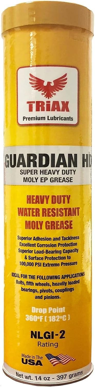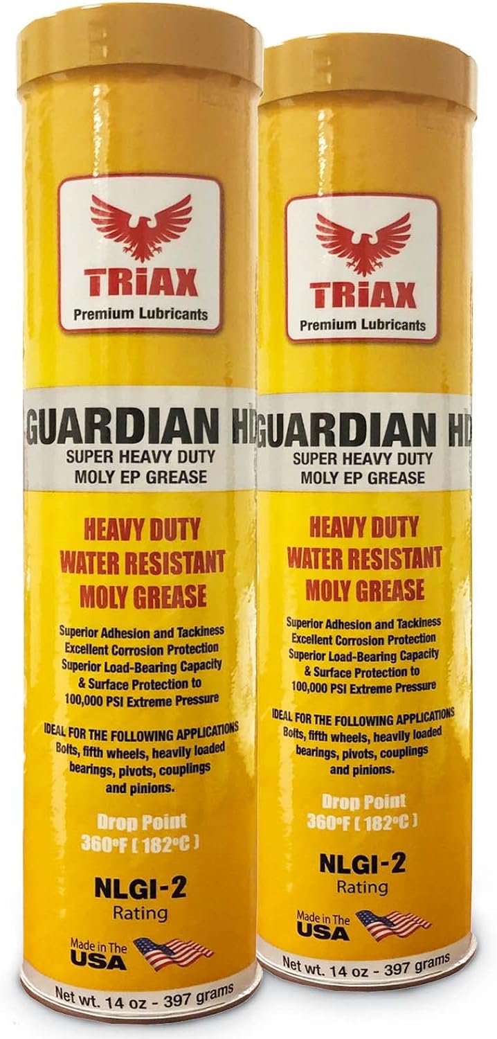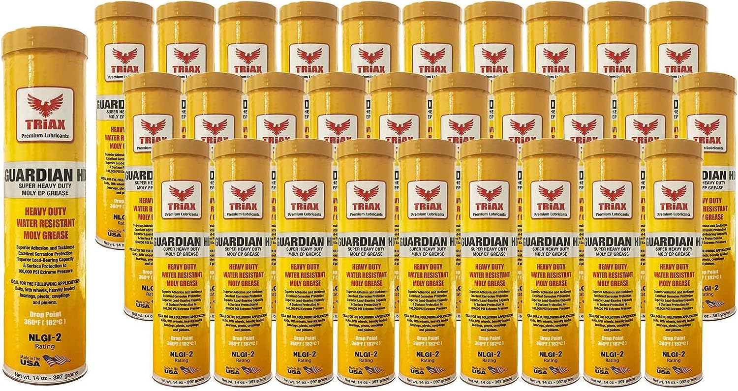 Triax Guardian HD Super Heavy Duty Moly EP Grease, True Multi Purpose, Wheel Bearings, Shock Loaded Components, Extremely Tacky, 400 F Drop Point, Zero Separation, 14 Oz Cartridge (10 Tube Pack)