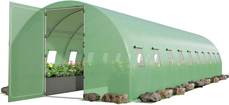 33x10x7 ft Large Tunnel Greenhouse for Outdoors, Upgraded Swing Doors, Large Walk-in Greenhouse, Heavy Duty Galvanized Steel Frame, Large Greenhouse for Outside with 12 Windows, Green