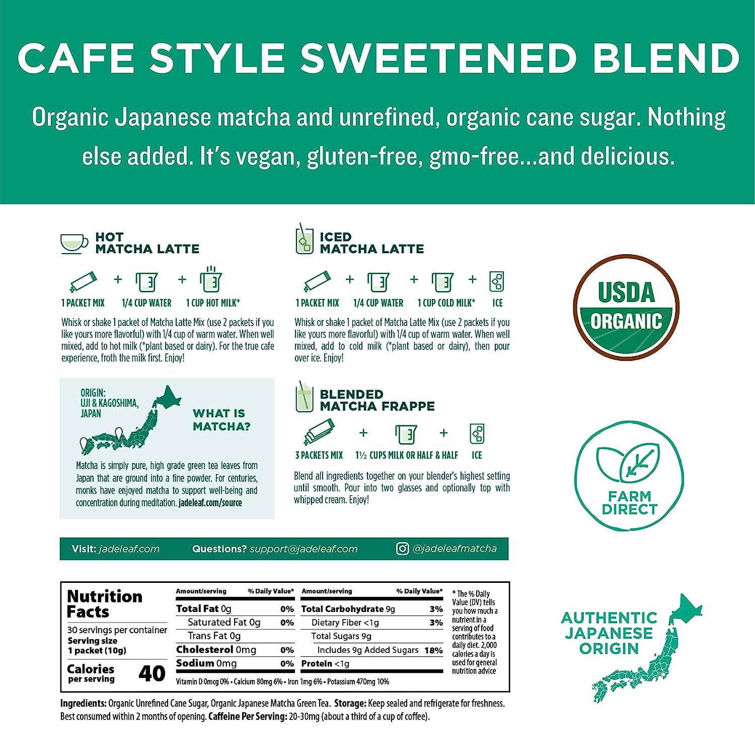 • Love It or Your Money Back - if you are not 100% satisfied with your purchase of our Matcha for any reason, just email us and we'll refund your order in full, no questions asked