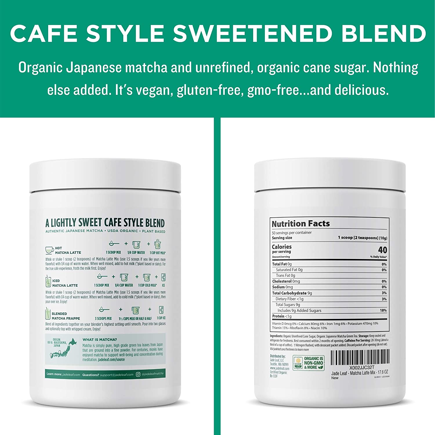 Jade Leaf Organic Matcha Latte Mix - Cafe Style Sweetened Blend - Sweet Matcha Green Tea Powder (1.1 Pound)