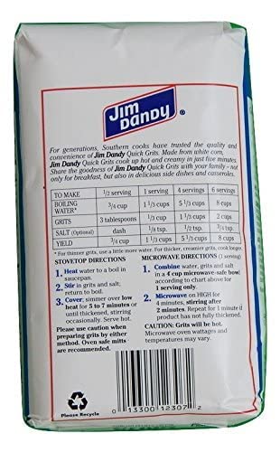For generations, Southern cooks have trusted the quality and convenience of Jim Dandy Quick Grits. Made from white corn, Jim Dandy Quick Grits cook up hot and creamy in just five minutes. Share the goodness of Jim Dandy Quick Grits with your family - not only for breakfast, but also in delicious side dishes and casseroles.