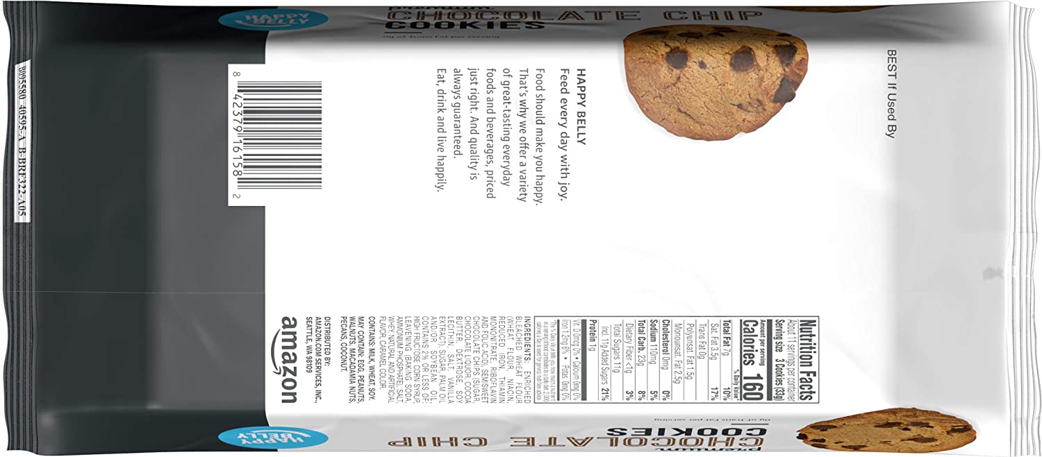 Happy Belly Premium Chocolate Chip Cookies are the cookie treat you've been waiting for. Enjoy on their own, use in dessert recipes, or as a crumbled dessert topping. Made with no artificial colors, we think you'll enjoy these as much as we do.