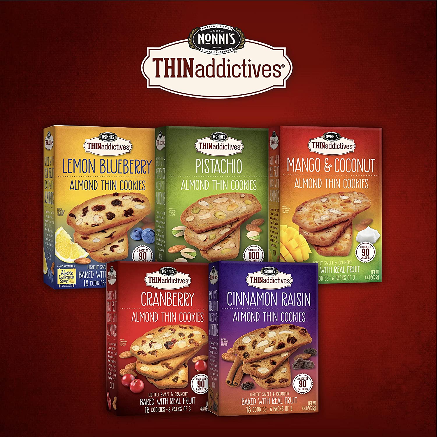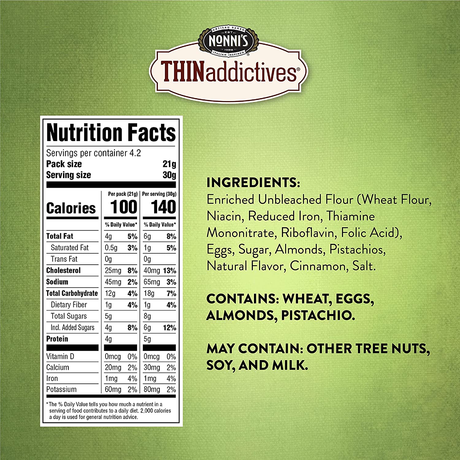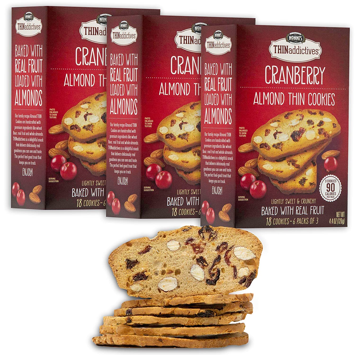 Product Highlights: Only 100 Calories Per Serving - Each cookie only has 100 calories! Enjoy this guilt-free snack anytime or anywhere. Light, Sweet & Crunchy - Packed with delicious cranberry and California almonds, you’ll be hooked after just one bite. Wholesome Ingredients - All Nonni's almond thin cookies are baked with the freshest, most wholesome ingredients without any artificial flavors. Individually Wrapped - Each cranberry almond thin cookie comes individually wrapped for freshness.