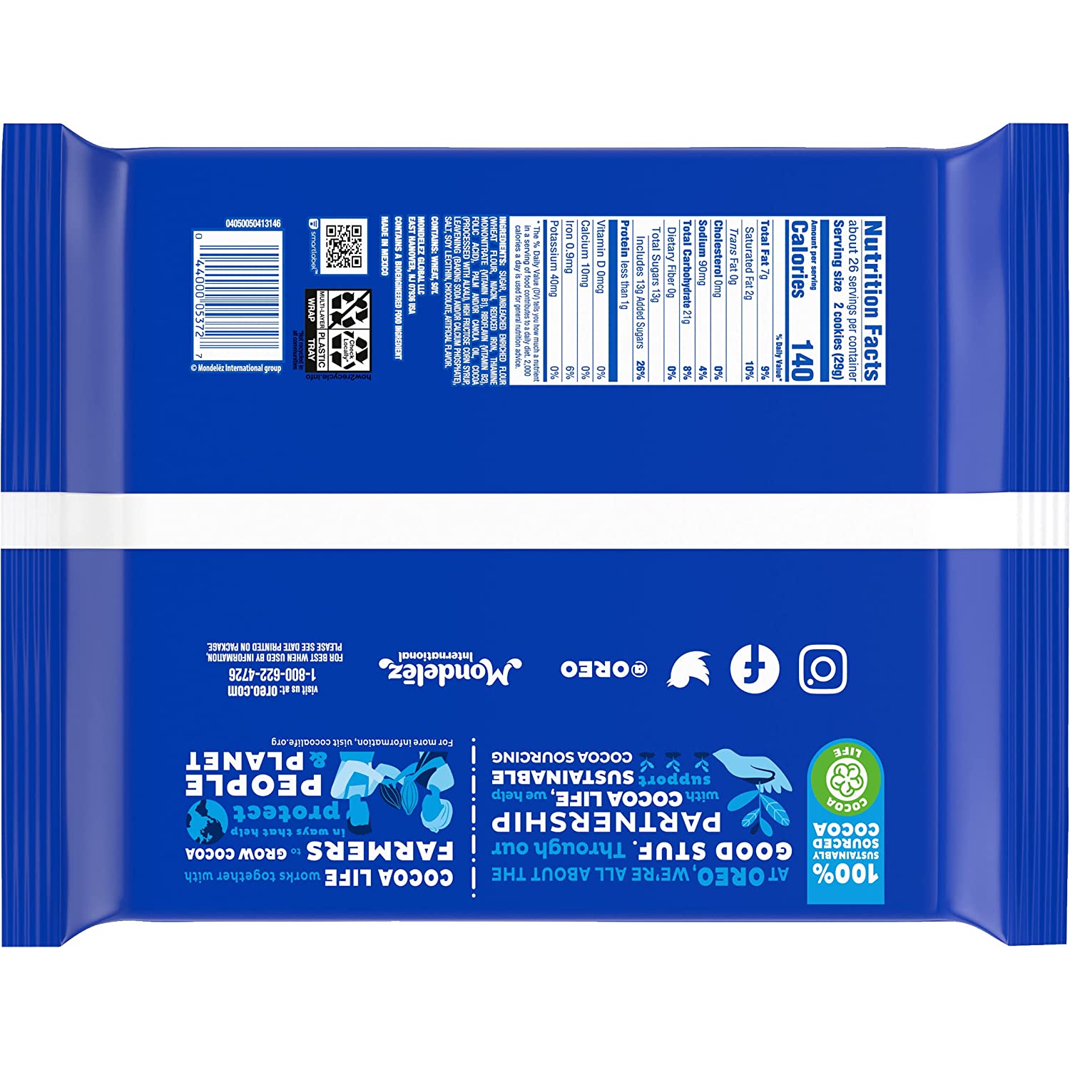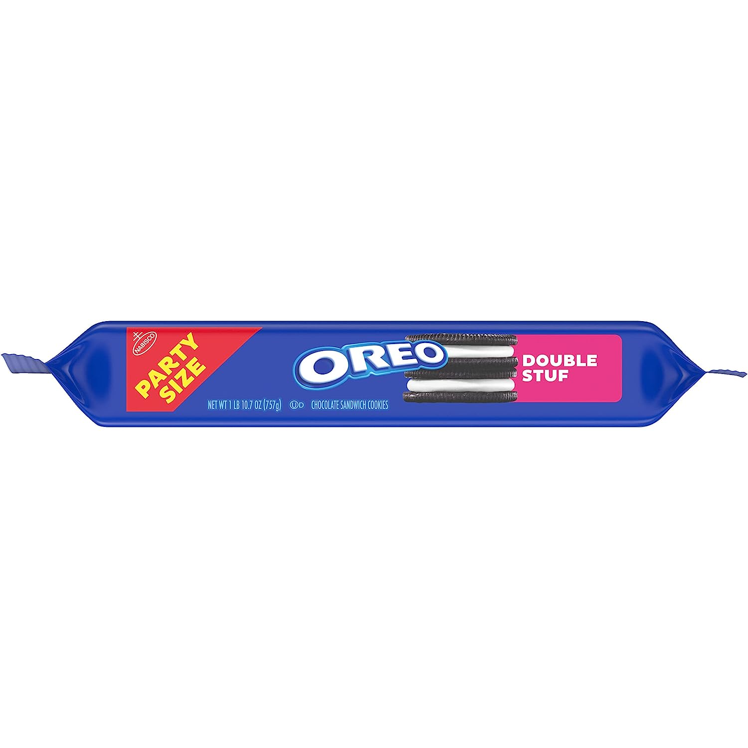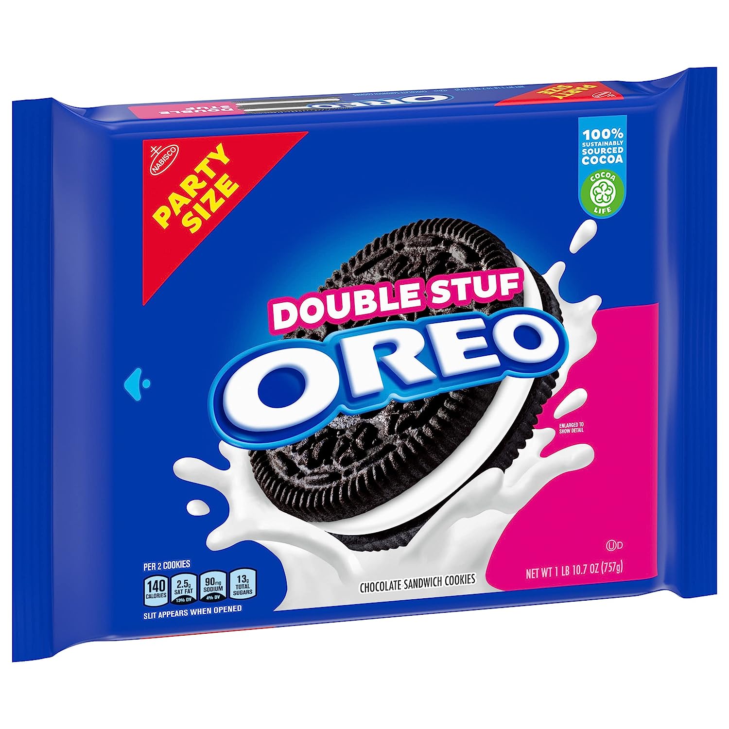 OREO Double Stuf Chocolate Sandwich Cookies have been America's favorite cookie for over 100 years. Stuffed with twice as much original OREO creme, these chocolate sandwich cookies are supremely dunkable. Double Stuf party size OREO cookies are great for sharing with friends or enjoying with a cold glass of milk. OREO Double Stuf cookies are also a hit as party cookies at your next gathering. During the day, pack them as sweet snacks for school lunch or work. The resealable party size packs with easy-pull tab keeps chocolate cookies fresh and is great for snacking, sharing, or traveling. Keep party size OREO cookies on hand so you're ready for any snacking occasion.