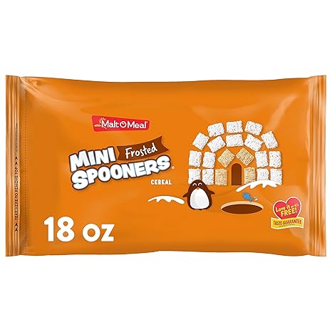 Malt-O-Meal Frosted Mini Spooners Whole Grain Breakfast Cereal, Crunchy Frosted Shredded Wheat Cereal, Large Cereal for Family, 18 OZ Resealable Cereal Bag