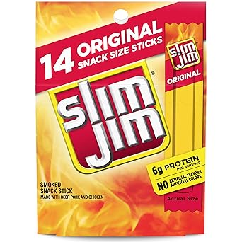 Slim Jim Smoked Meat Sticks, Original Flavor, 6g Protein Per Serving, Snack Size, Easter Basket Stuffer, 0.28 oz. (14 Count)