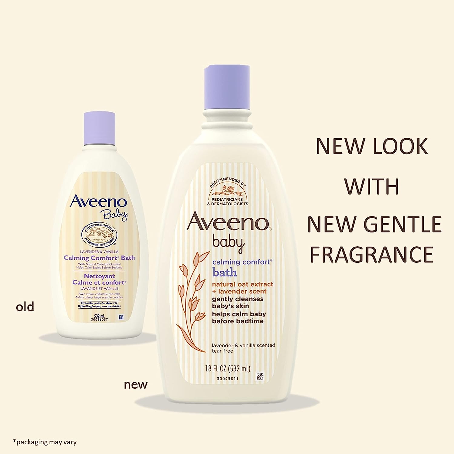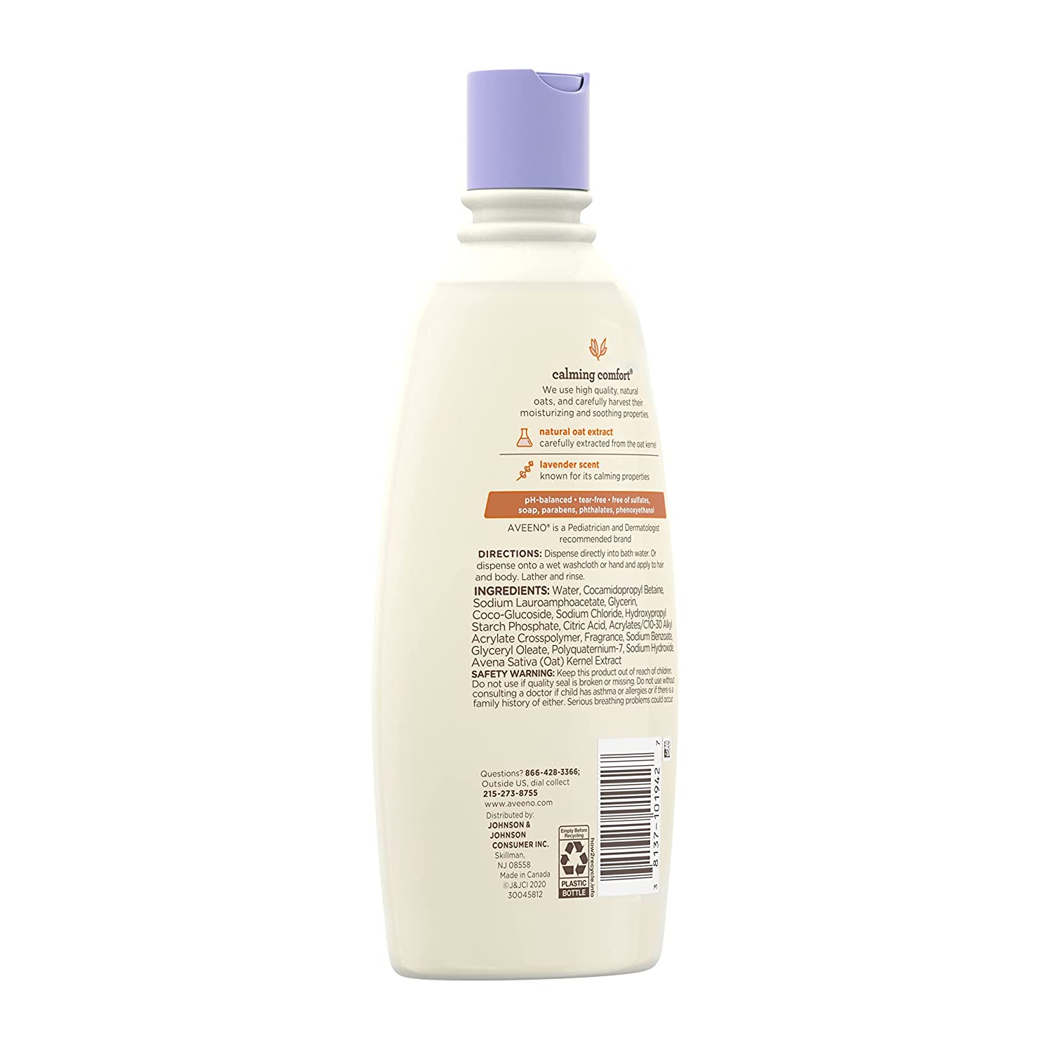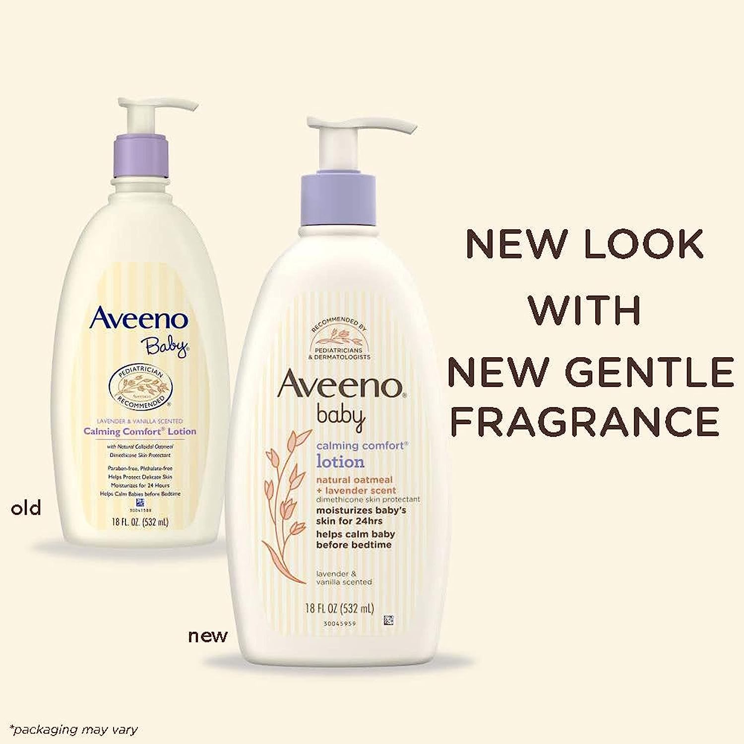 Aveeno Baby Calming Comfort Moisturizing Body Lotion with relaxing scents of lavender and vanilla helps heal and protect baby's delicate skin and moisturizes for 24 hours. This non-greasy moisturizing baby lotion features skin-nourishing natural oatmeal, dimethicone skin protectant, and the calming scents of lavender and vanilla and helps calm baby before bedtime. Suitable for delicate skin, this soothing lavender baby lotion can be used for gentle massage, which is clinically shown to relax babies and improve their overall well-being. Aveeno Baby Calming Comfort Body Lotion is non-greasy, fast-absorbing, pH-balanced and free of parabens, phthalates, steroids and phenoxyethanol. Aveeno is recommended by pediatricians and dermatologists.