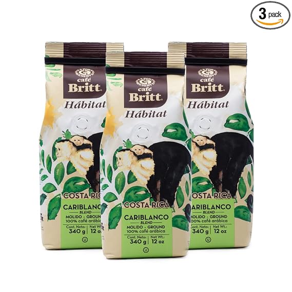 Caf�© Britt´ï - Costa Rican Habitat Cariblanco Coffee (12 oz.) (3-Pack) - Ground, Arabica Coffee, Kosher, Gluten Free, 100% Gourmet & Dark Roast