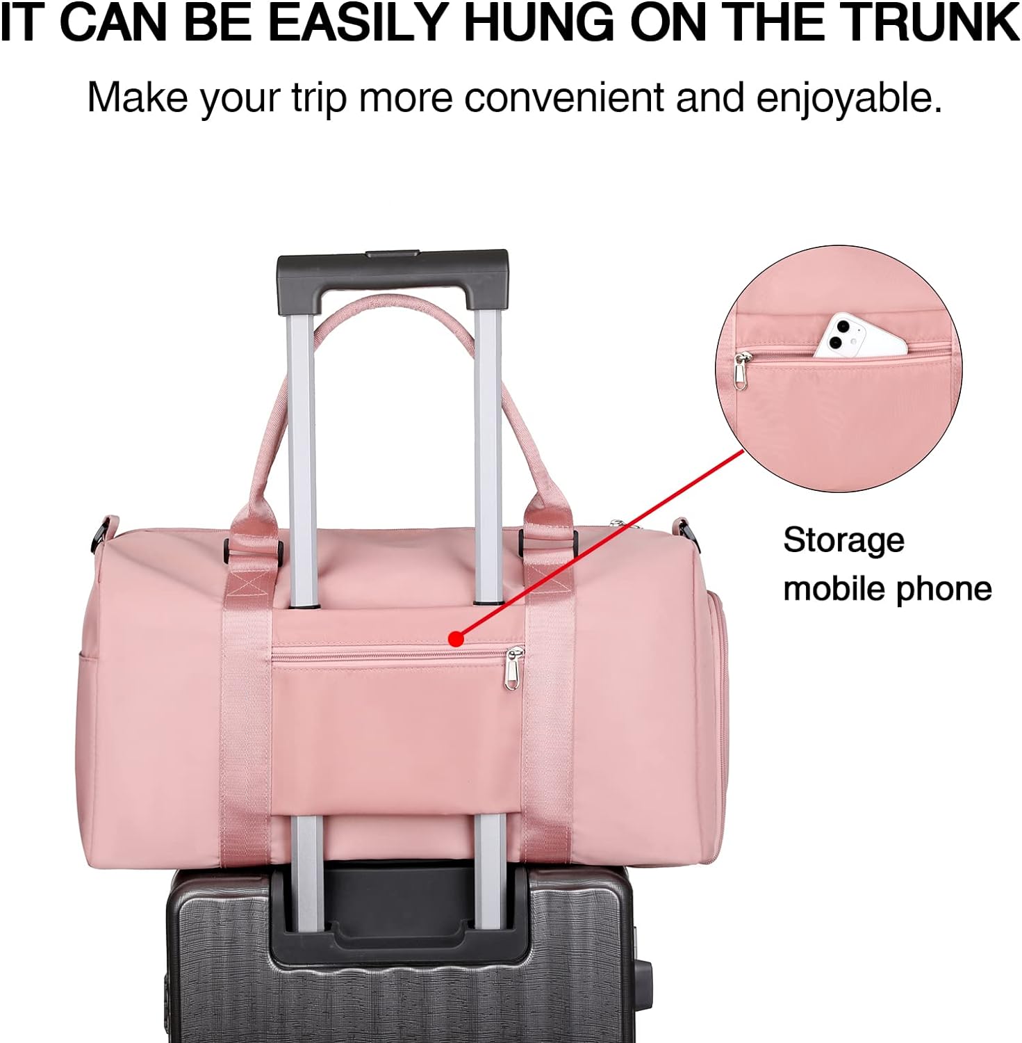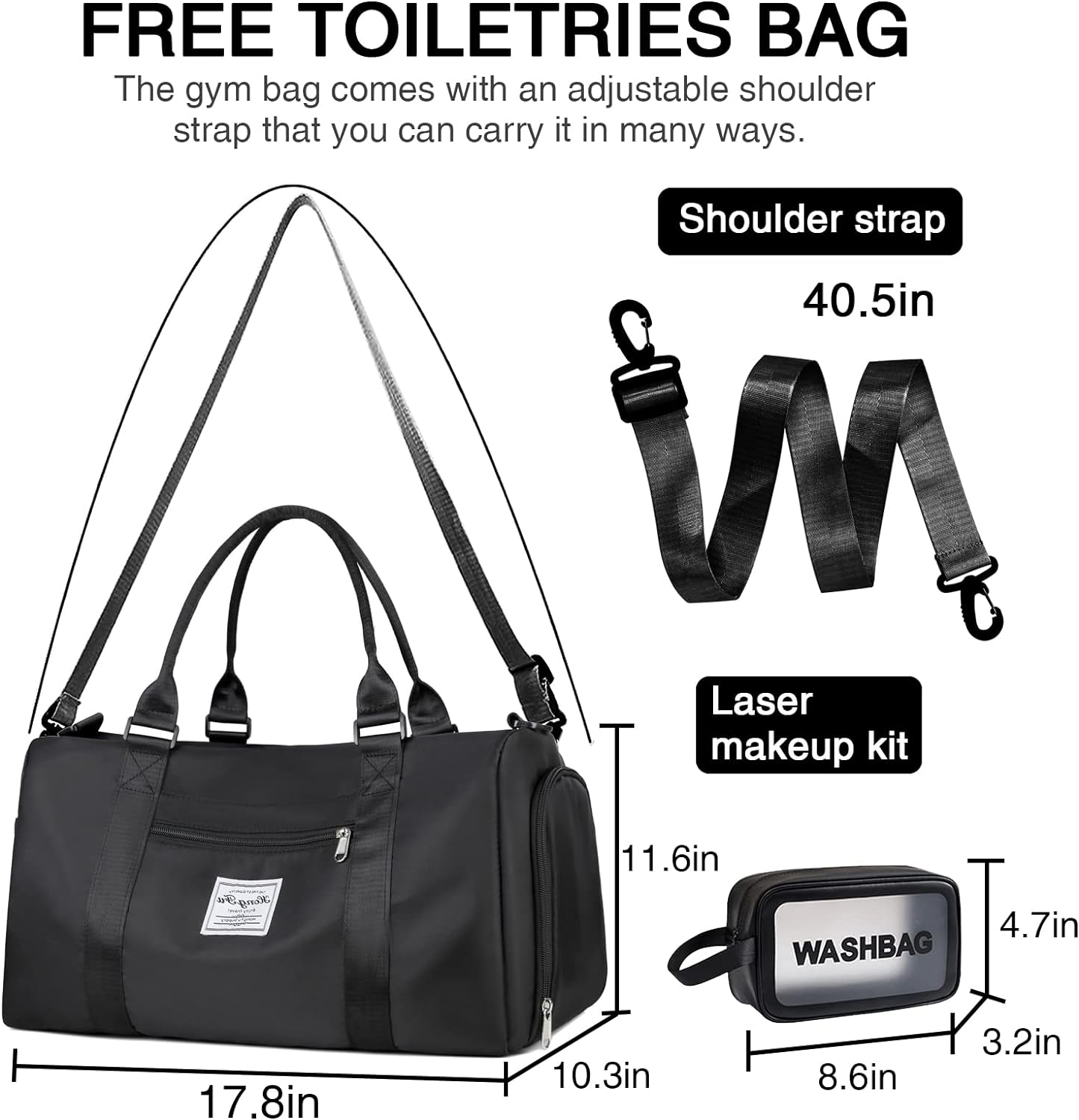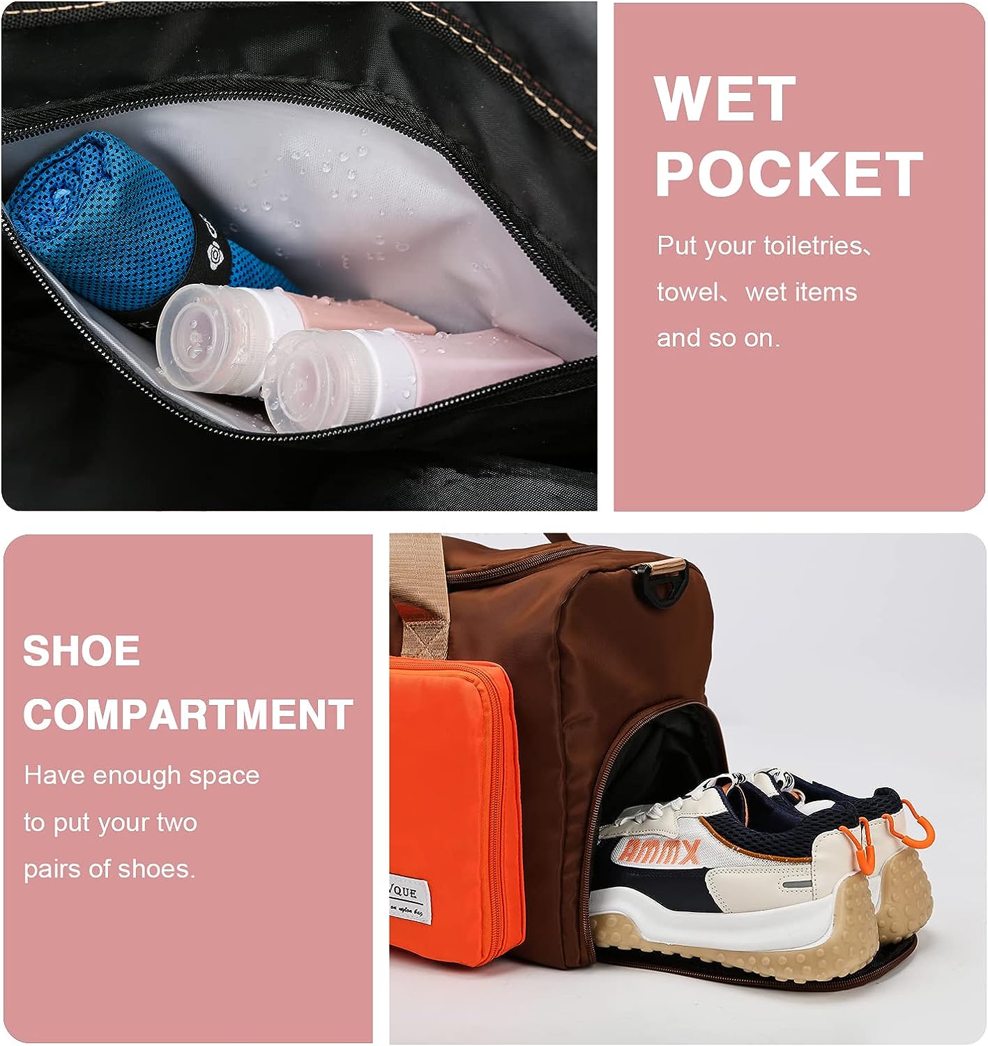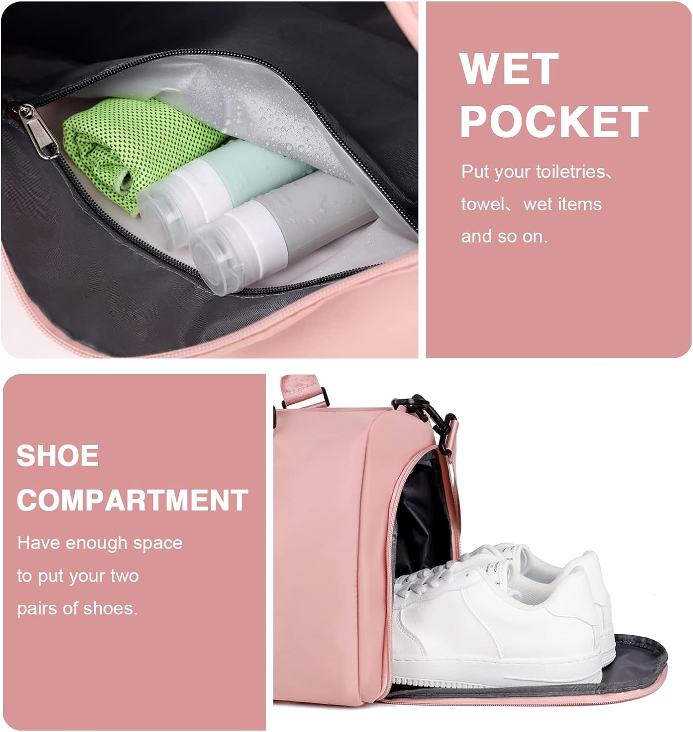 Small Gym Bag for Women, Waterproof Duffle Bag Carry On Weekender Bag with Shoe Compartment & Wet Pocket, Tote Bag for Travel, Workout, Sport