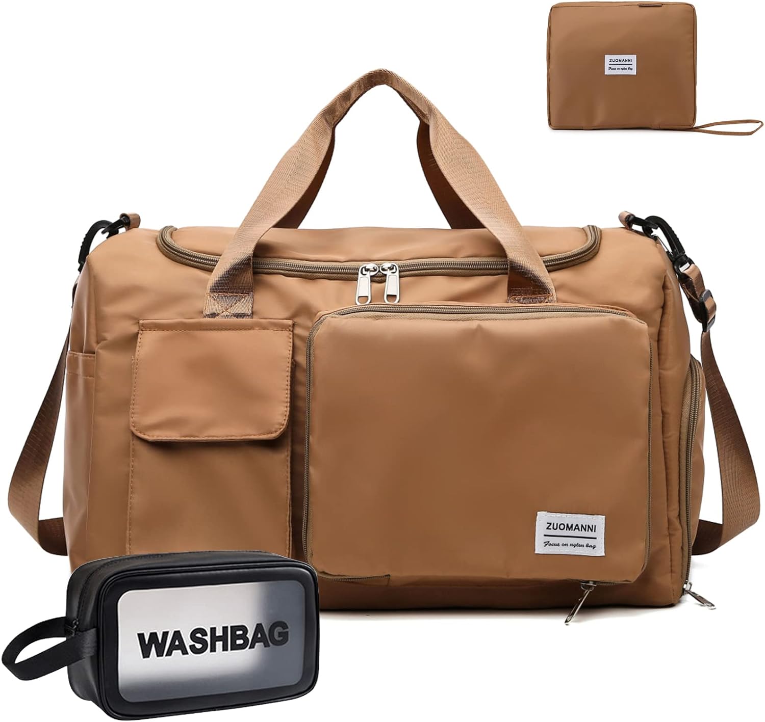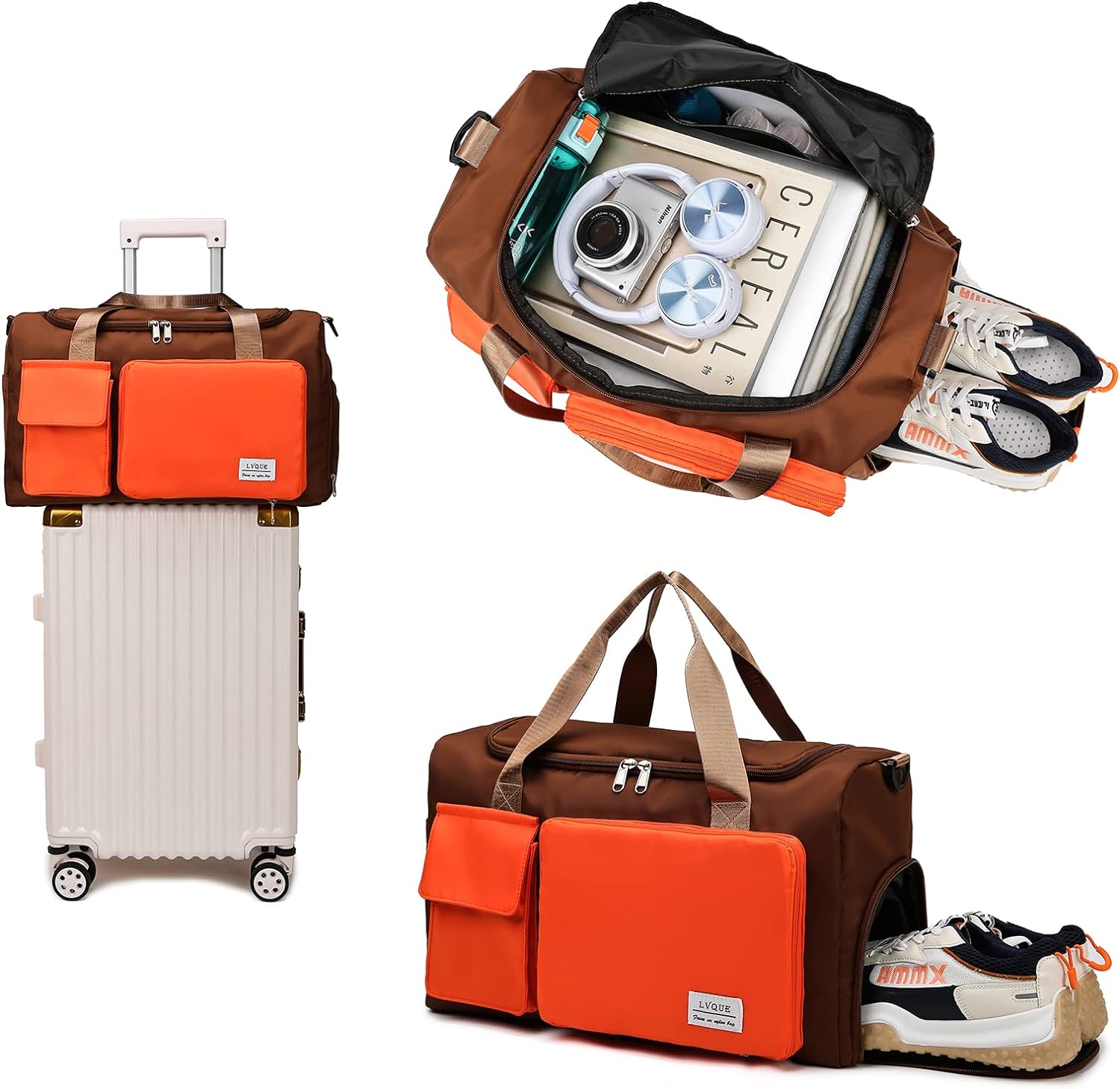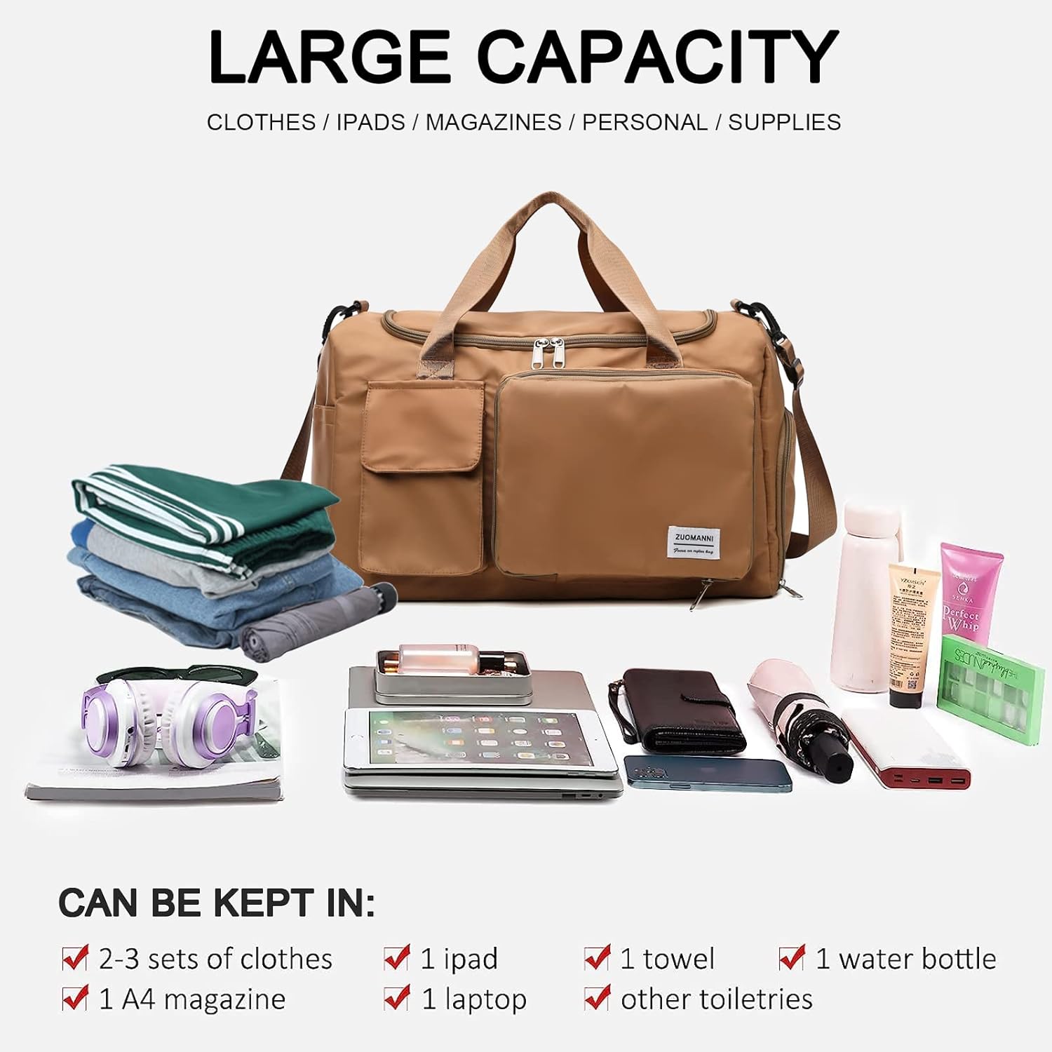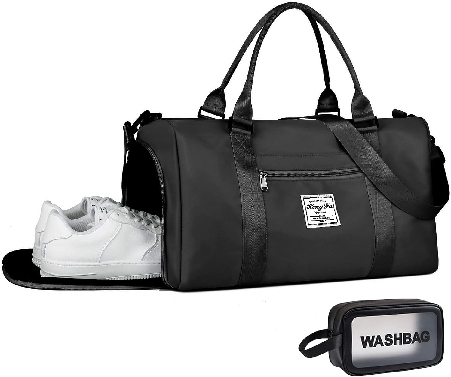 Small Gym Bag for Women, Waterproof Duffle Bag Carry On Weekender Bag with Shoe Compartment & Wet Pocket, Tote Bag for Travel, Workout, Sport
