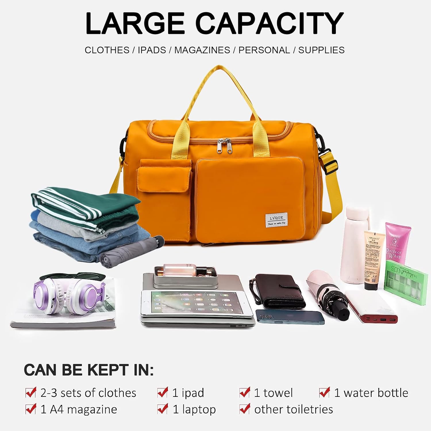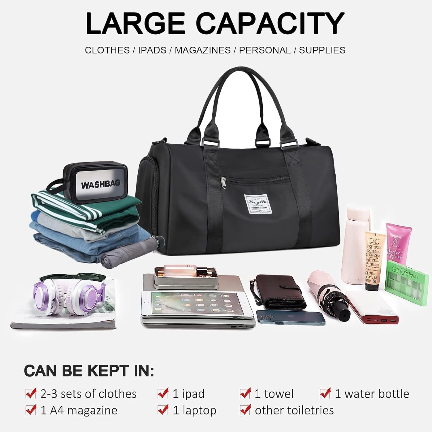 • 【Multifunctional Tote Bag】Our gym bag can be used for various indoor and outdoor activities. It can be used as a dry and wet separate bag, gym bag, dance bag, luggage bag, beach bag, cheer bag, mommy bag, hospital bag, nurse bags, overnight bag, weekender bag, which is the perfect partner for short-distance, travel and air travel.