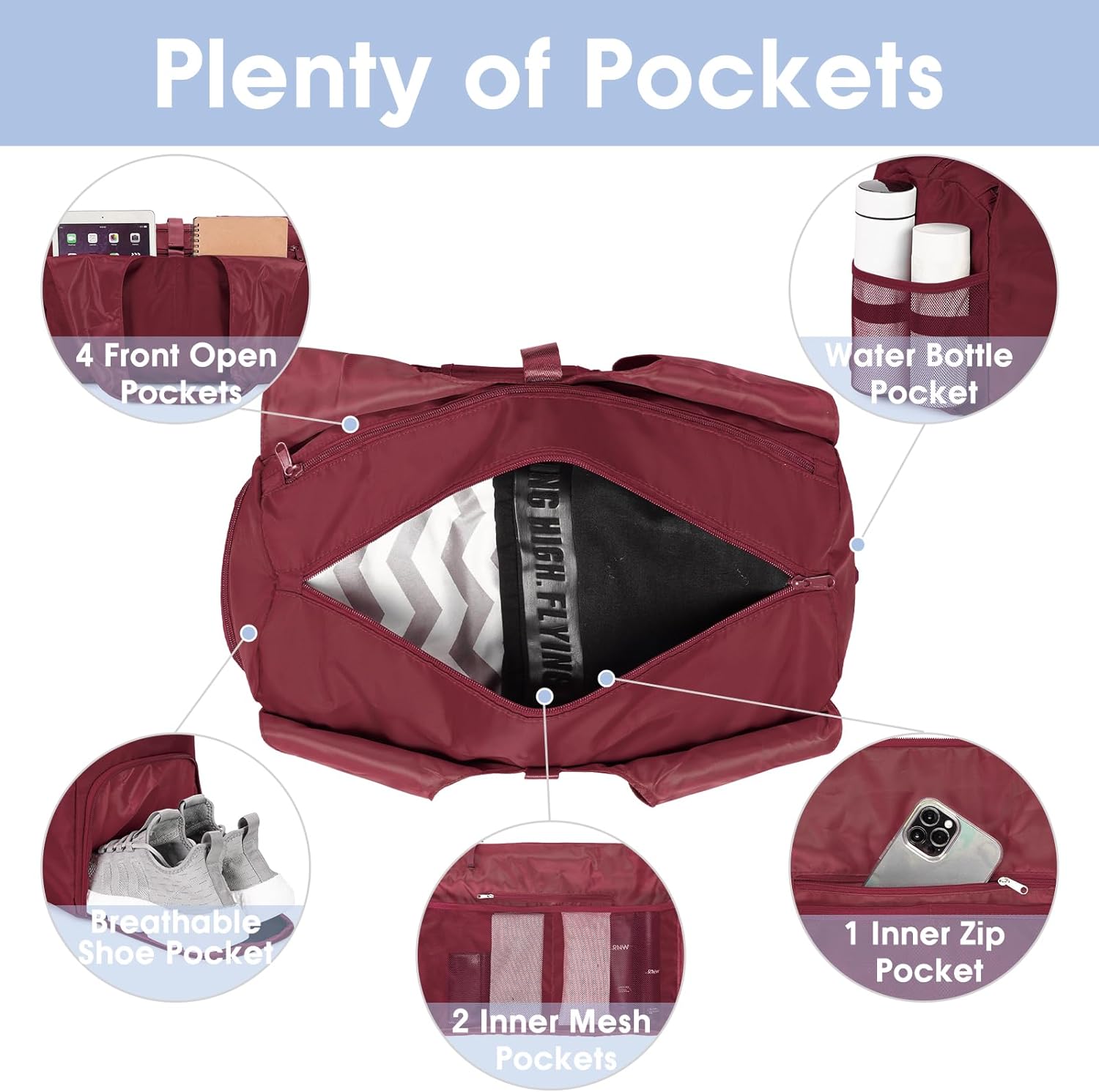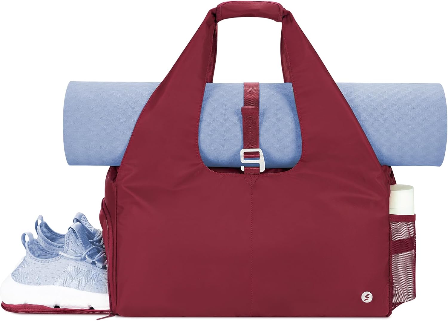 Women Gym Bag with Shoe Compartment and Wet Pocket with Adjustable Yoga Mat Holder