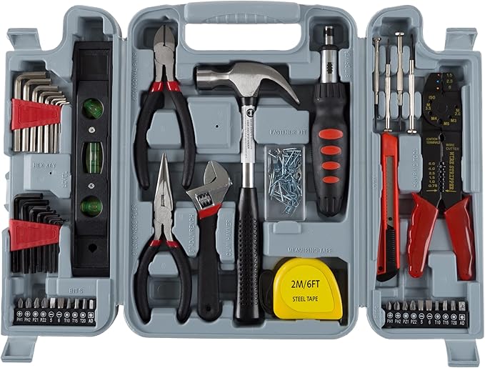 130-Piece Tool Set - Tool Kit With Hammer, Wrenches, Screwdriver, Pliers, and More - Hand Tools For Home Improvement Projects By Stalwart (Gray)