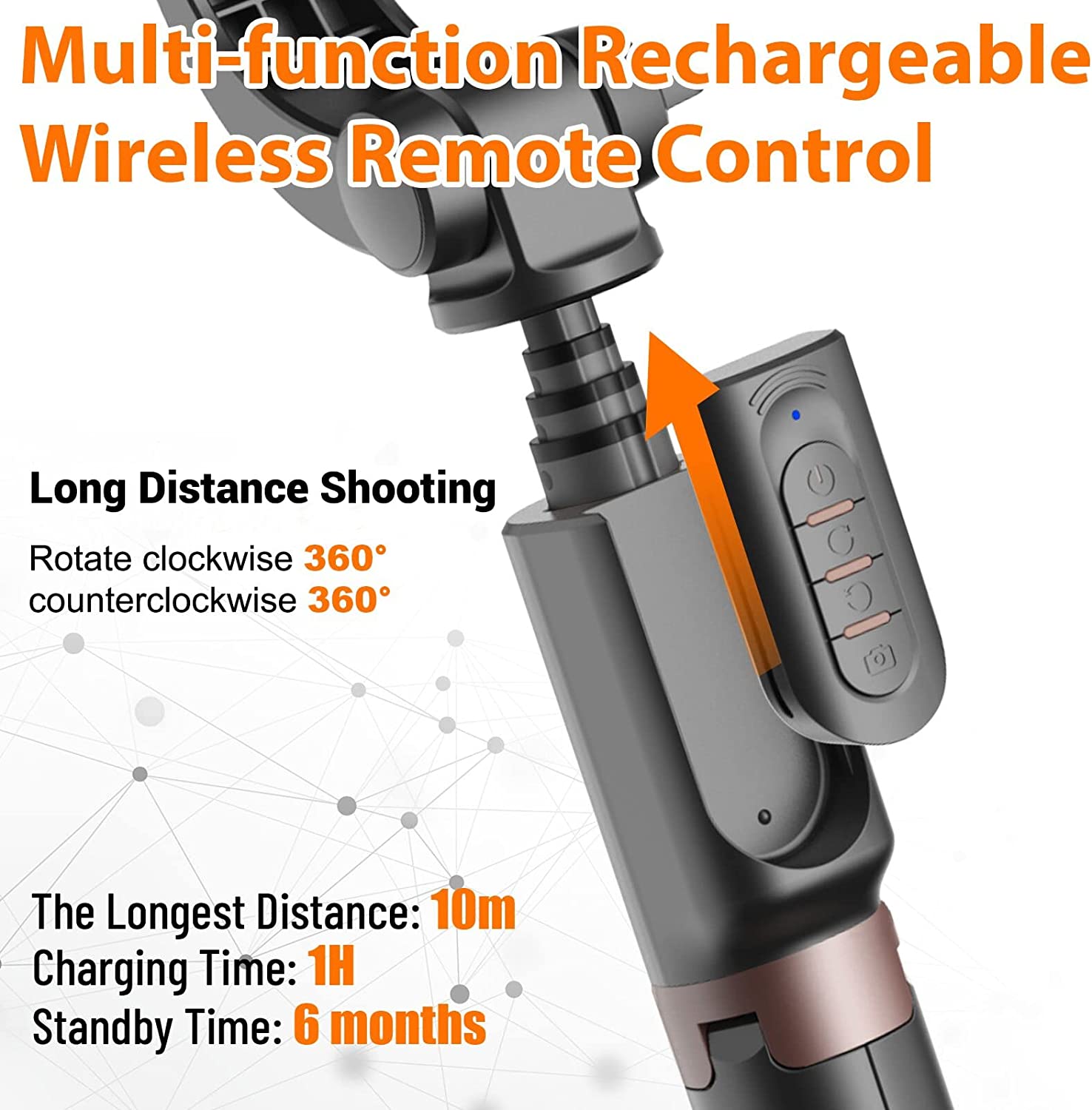 • With multi-function remote control:The Bluetooth wireless remote control adopts a tripod-integrated card slot design, does not require an extra APP, can be used just by connecting to a smartphone, and can shoot even at a distance of about 10 m. Short press/double tap/long press the clockwise or counterclockwise rotation adjustment button, the stabilizer can be rotated at 90 degrees, 360 degrees, and any angle, which is convenient to use.