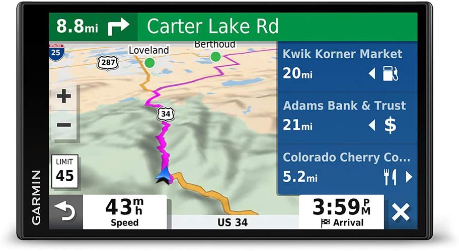 For drivers who love new adventures while traveling, the Garmin Drive Smart 65 GPS navigator is the ultimate road trip companion. Featuring simple menus and easy-to-read maps, Garmin Drive Smart 65 lets you view turn-by-turn directions at a glance on a bright 6.95” edge-to-edge touchscreen display. Traffic and map updates are included along with helpful driver alerts to encourage safer driving.