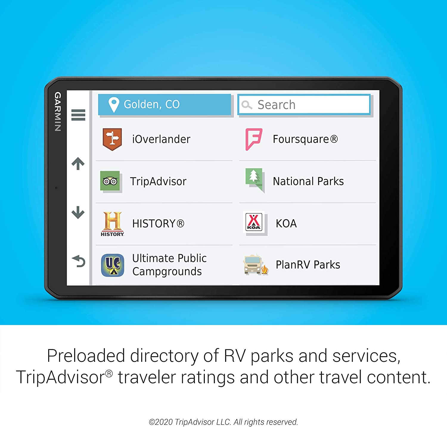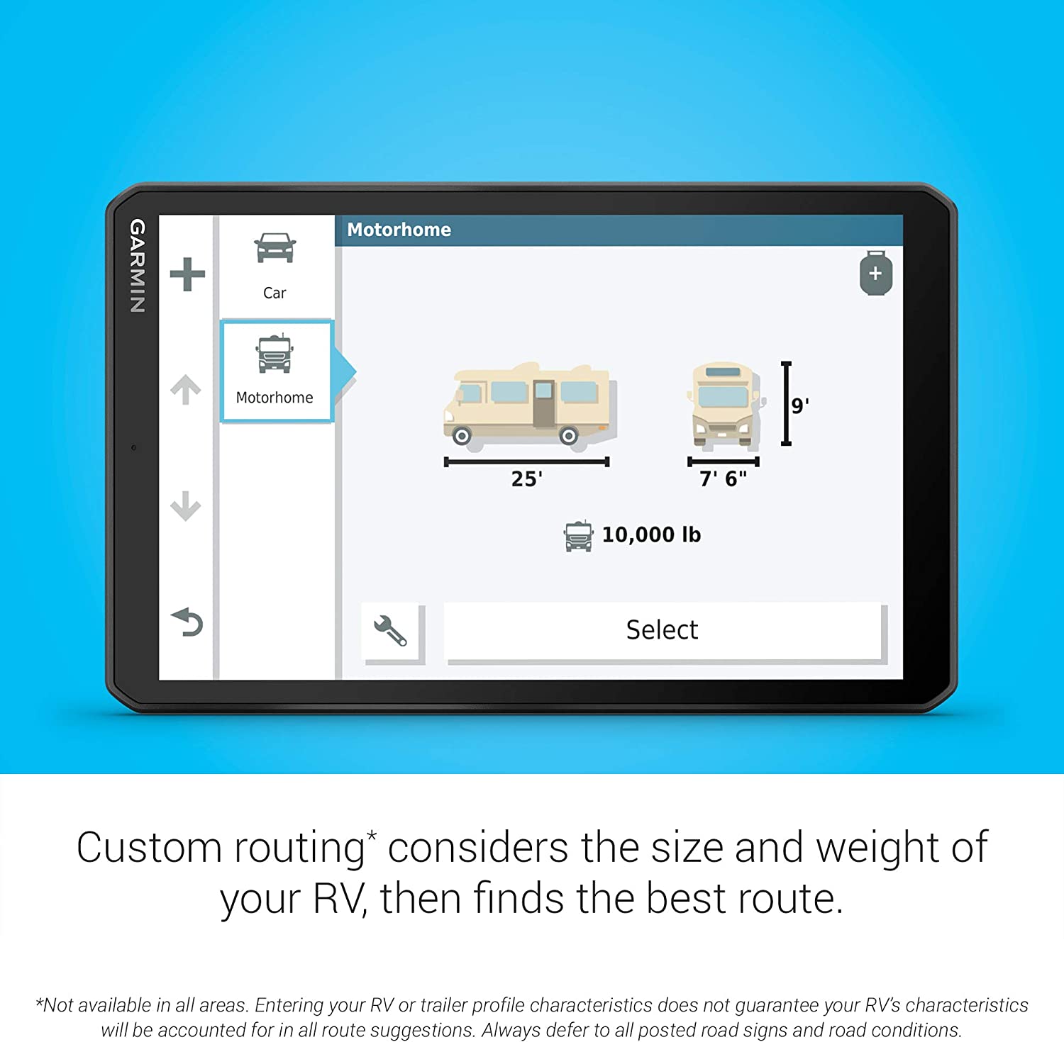 Get lost in the moments, not the route. The RV 890 GPS navigator features a large 8" edge-to-edge display you can view in portrait or landscape mode. It creates custom routes to suit the size and weight of your RV (not available in all areas) and provides road warnings for steep grades, sharp curves and more. To simplify your trip, it includes TripAdvisor traveler ratings, a directory of RV parks and services plus content from Ultimate Public Campgrounds, KOA and more. Pair RV 890 with your compatible smartphone for hands-free calling and smart notifications (requires the Garmin Drive app downloaded to your compatible smartphone). Use the Garmin voice assistant for more convenience while keeping your hands on the wheel. Download the Garmin Drive app to easily share GPX files and access live traffic and weather.