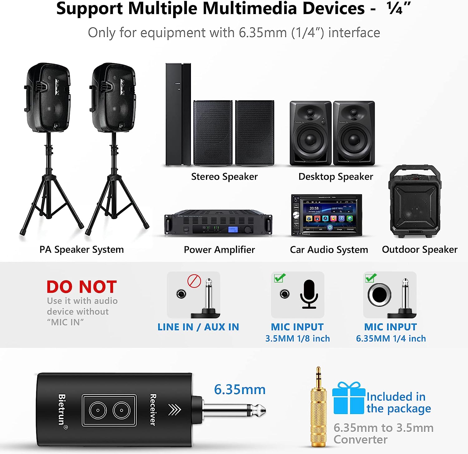 • 1-Year Warranty And Precautions: If your microphone has no sound, make sure you have enough power for the microphone and receiver. Insert the MIC jack, Not an AUX jack. Bietrun offers1year warranty and free replacement service.Can write to us when you have any questions.We will be the greatest brand in the United States.Not supported Bluetooth speaker and MacBooks.