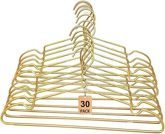 30 Pack Gold Matt Metal Wire Hangers Coat Suit Clothes Hangers with Notches, 16.5" Heavy Duty Durable Hangers for Adult, Shirt Dress Pants Hanger Space Saving Legging Organizer