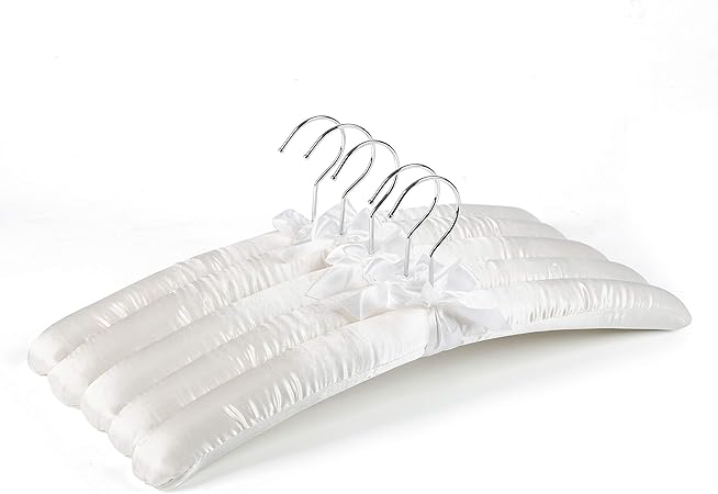 Amber Home 5 Pack 17 Inch Large Ivory Satin Padded Hangers for Women Clothing, Anti Slip Cushioned Hangers for Sweaters, Silk Hangers Fancy Dress Hangers for Wedding, Delicate Cashmere