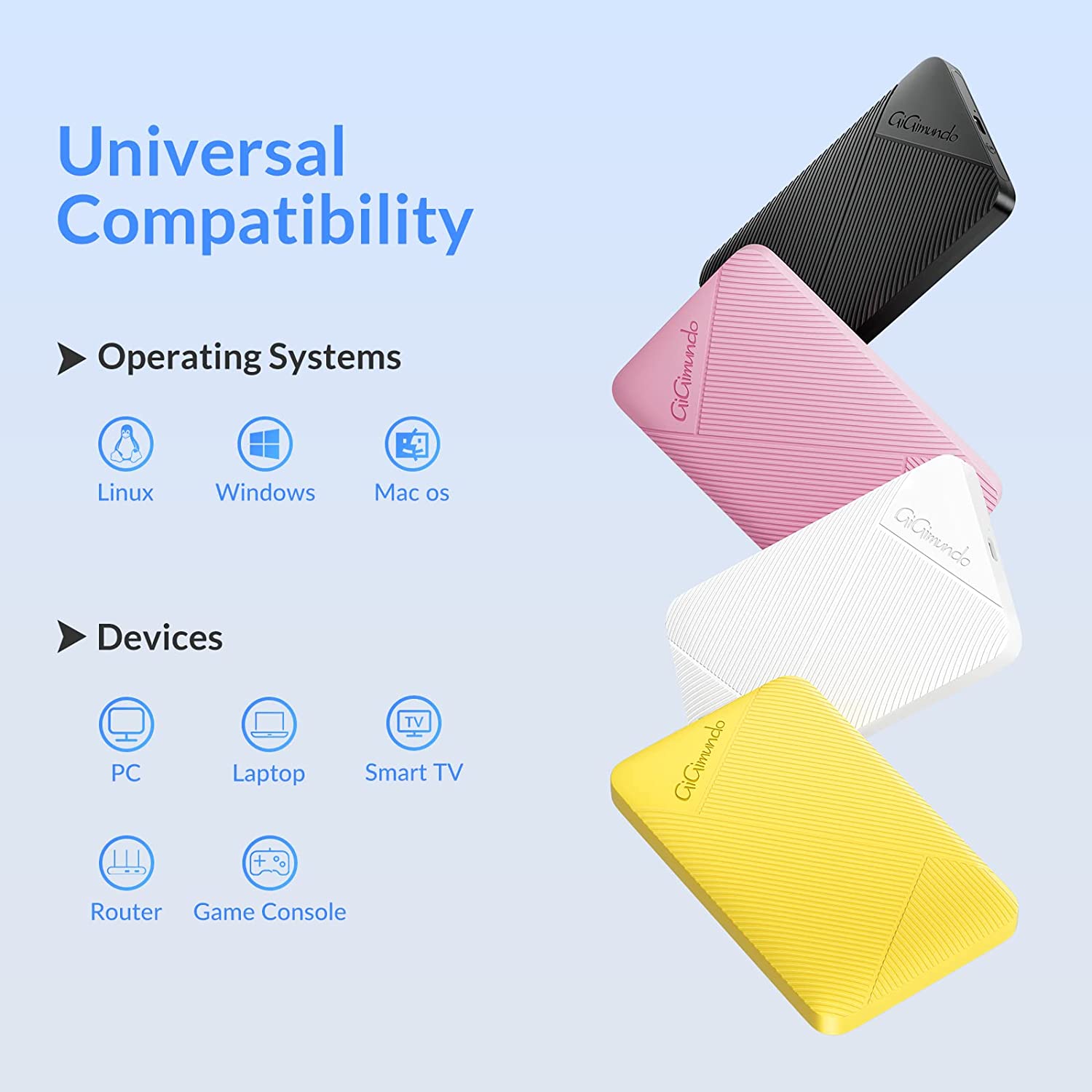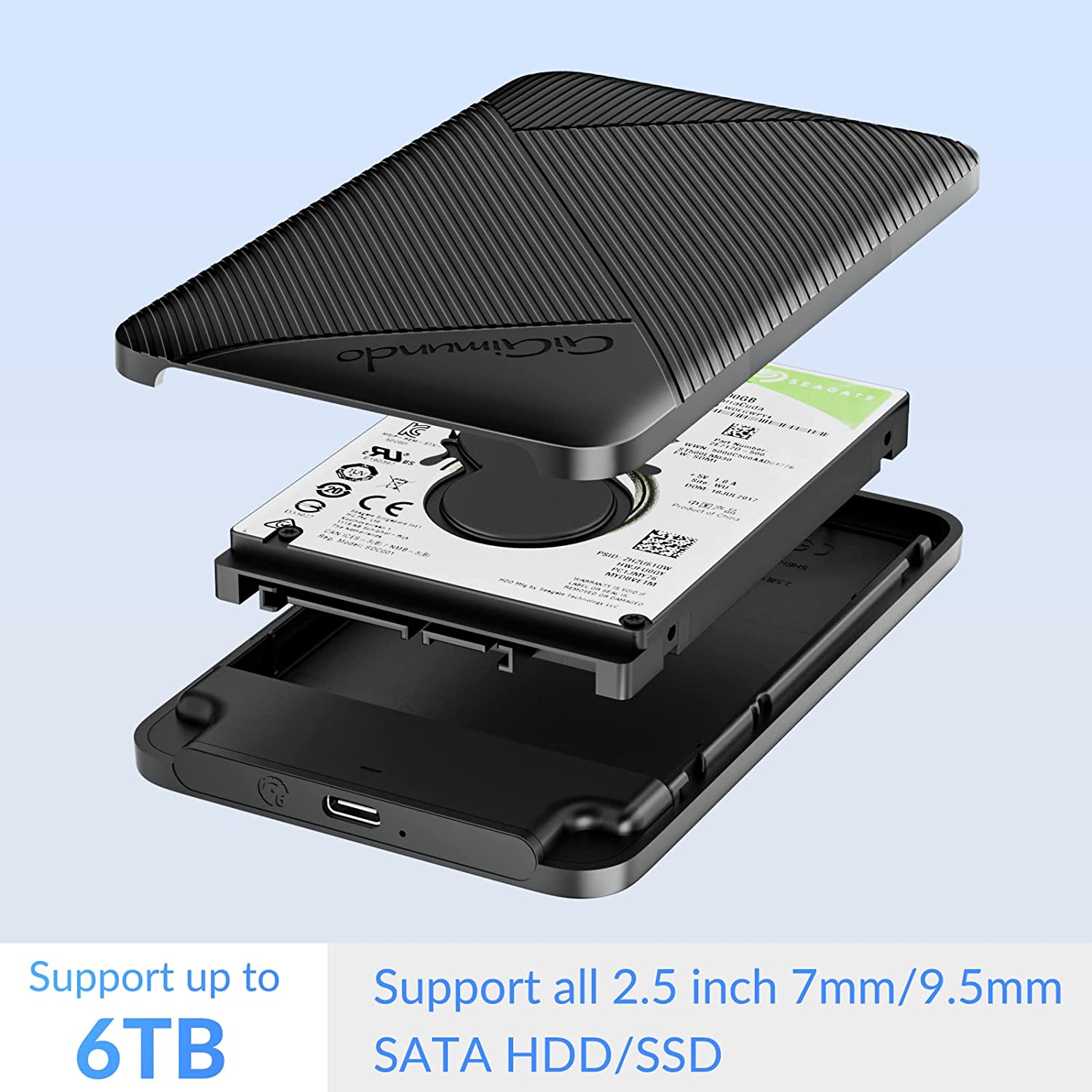 • Universal Compatibility -- GiGimundo hard drive enclosure designed for 2.5 inch 7mm 9.5mm HDD and SSD up to 6TB. Compatible with Western Digital, Seagate, Toshiba, Samsung, Kingston, Crucial, Hitachi, etc. 2.5" SATA SSD HDD. Supports Windows, LINUX, Mac OS 8.0 and above systems.