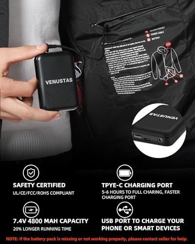 • MACHINE WASHABLE: Package includes 1 * men's 3-in-1 heated apparel, 1* battery pack, and 1* carry bag. If our battery doesn't meet the standard heating hours, please contact us for a new one