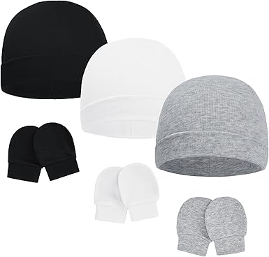 American Trends Baby Beanies for Boys Girls Newborn Infant Hat with Mittens Cute Cotton Hospital Hats for 0-6 Months