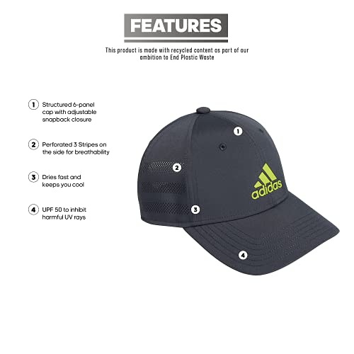 Details: For practices, games or just playing outside, this kids' cap keeps the sun out of their eyes. it's made of lightweight stretch fabric, with perforated 3-stripes on the sides for added ventilation. a snapback closure lets you adjust the fit.