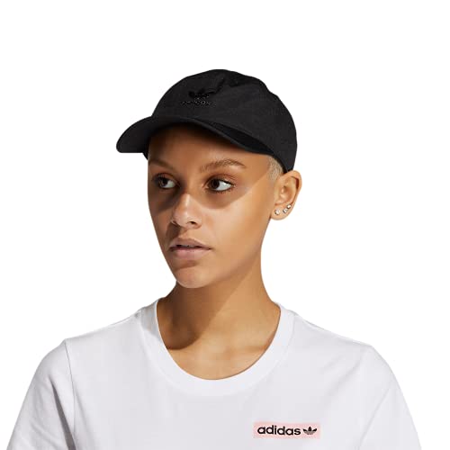 Details: Shine on no matter what in this adidas cap. the cotton cap has a relaxed shape and a strap-back closure with a clip lock for a secure fit. a metallic trefoil gleams on the front.
