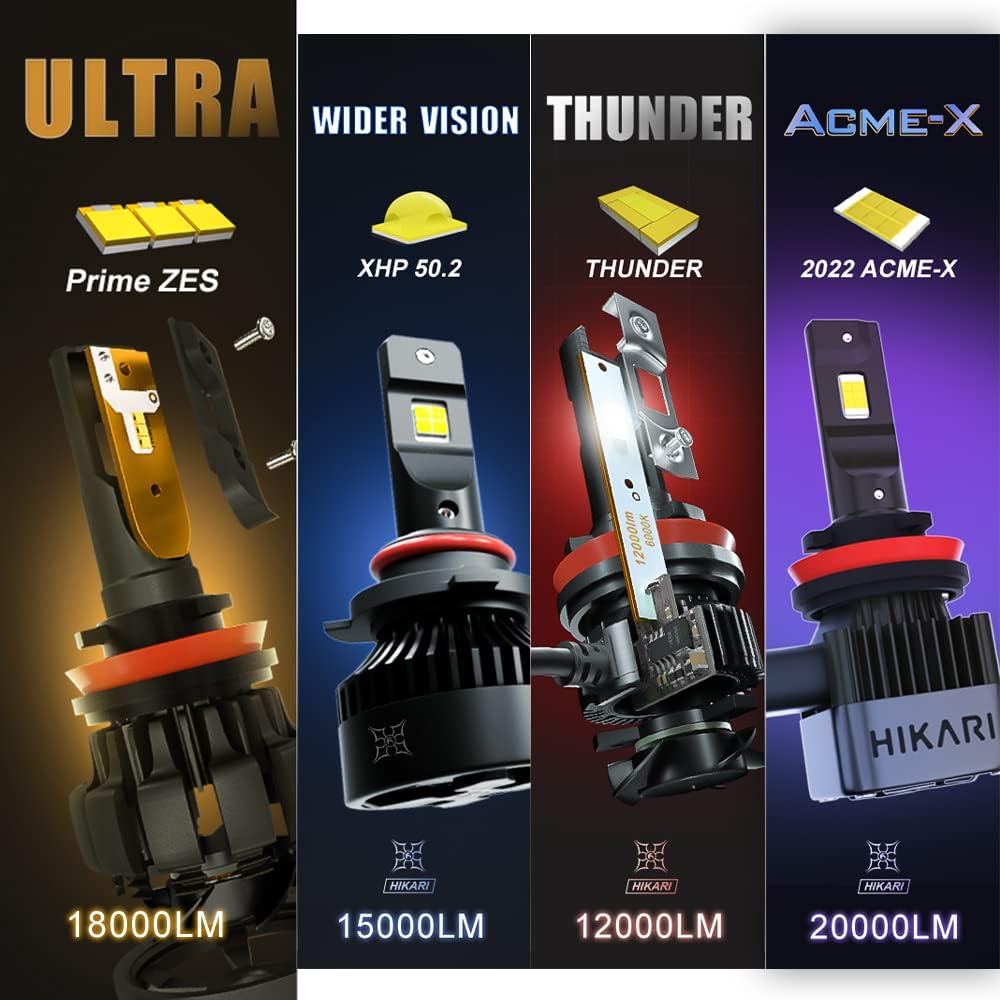 • ·【18,000LM High Performance】These are the top Torch led headlight bulbs worldwide. We introduce HIKARI Ultra, the next generation of ZES Extreme bright Series Light Bulbs! This powerful new design produces a stunning 500% brightness over stock while maintaining a super low power draw of less than 32 Watt.