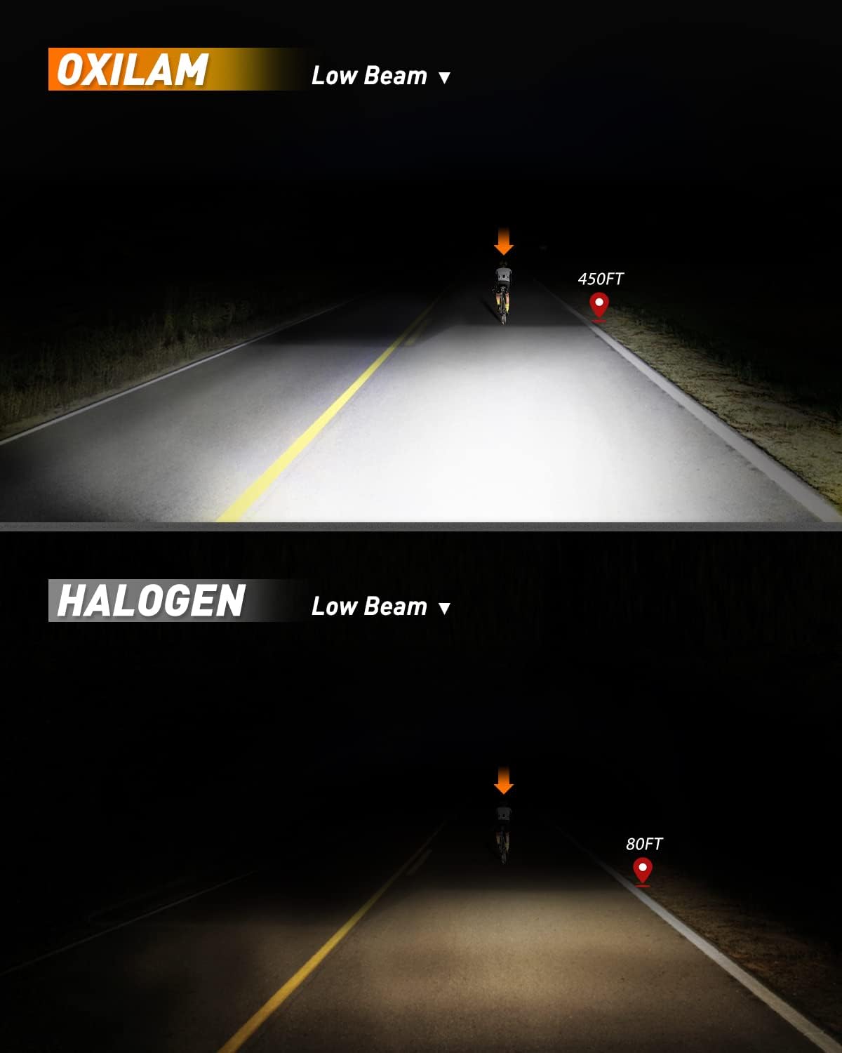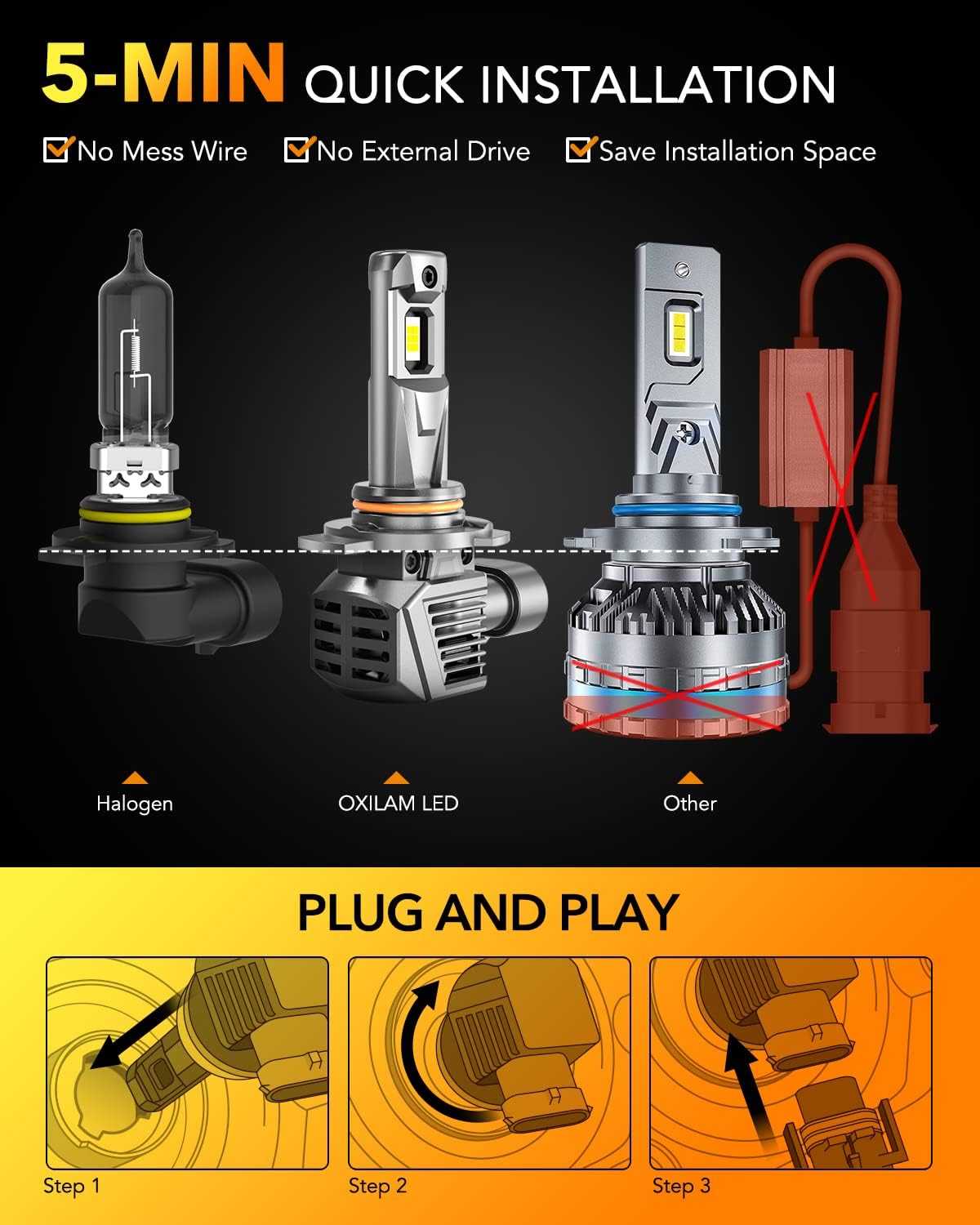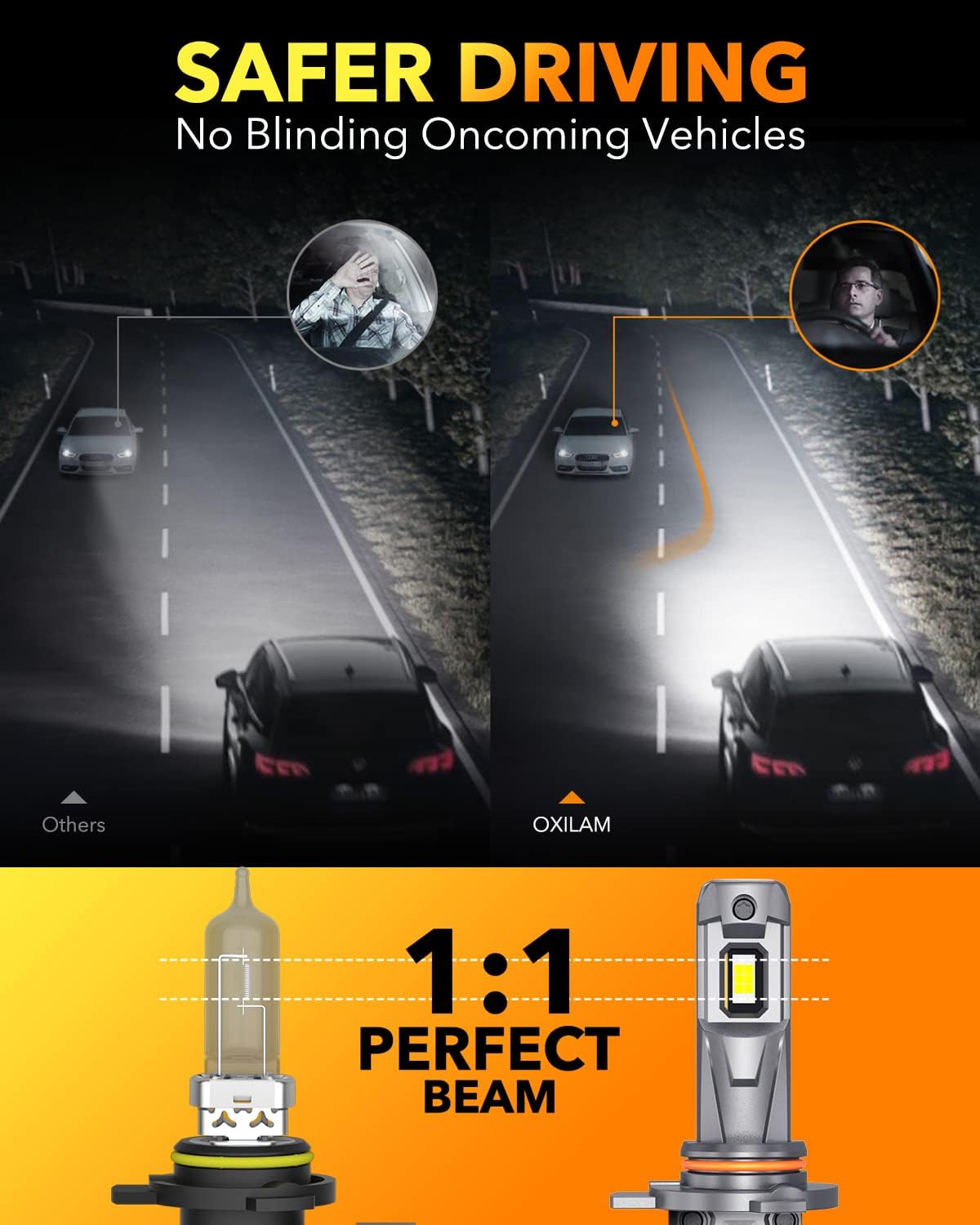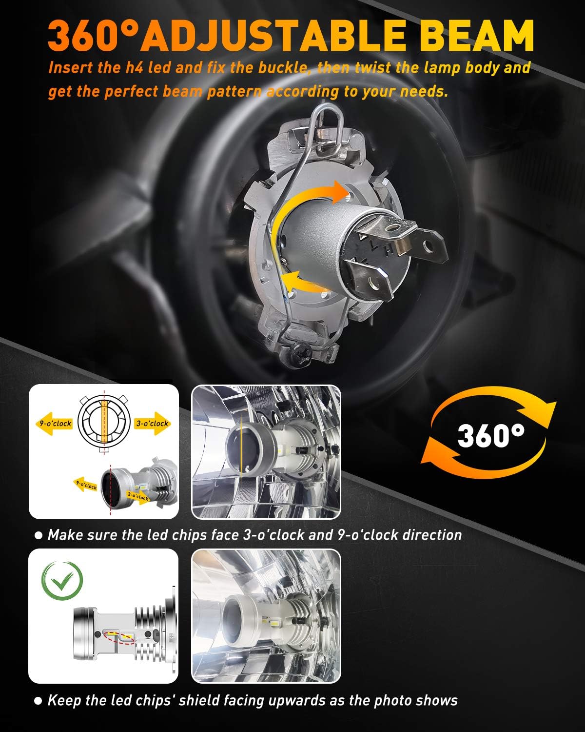 • Safer Driving Experience at Night: OXILAM 9003 led bulb comes with a rotating buckle that allows you to adjust it for a perfect pattern, without dark spots or shadowed areas, does not blind oncoming drivers, ensures signs/obstacles can be seen clearly and brings you a safe night driving experience