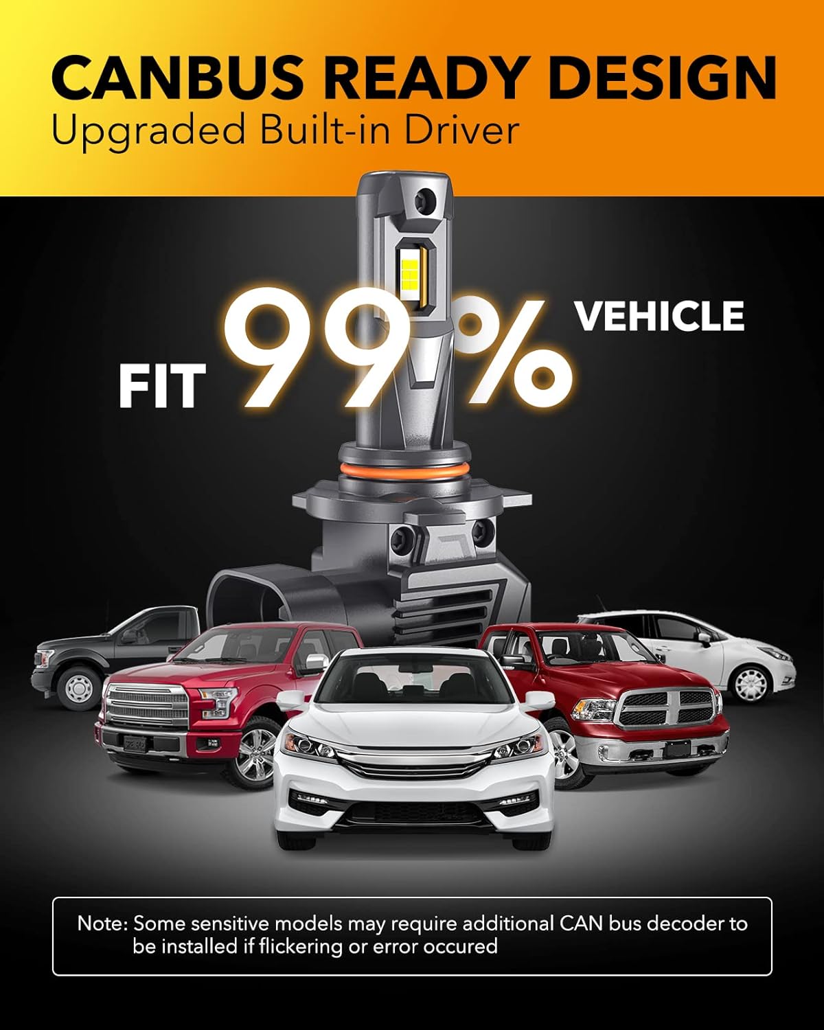 • No Radio Interference Design: Both 2pcs of h4/9003/hb2 led bulbs have built-in intelligent IC&EMC system and 50W high power avoid radio interference and error code for 99% of vehicles. For some models, additional decoder or anti-flicker harness may be required