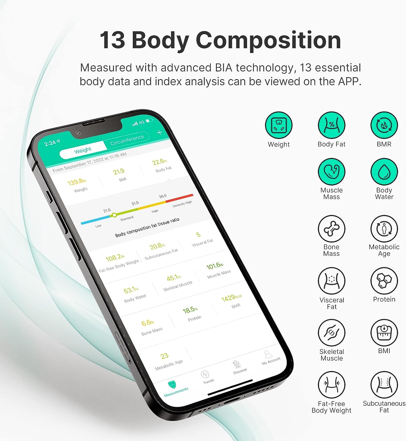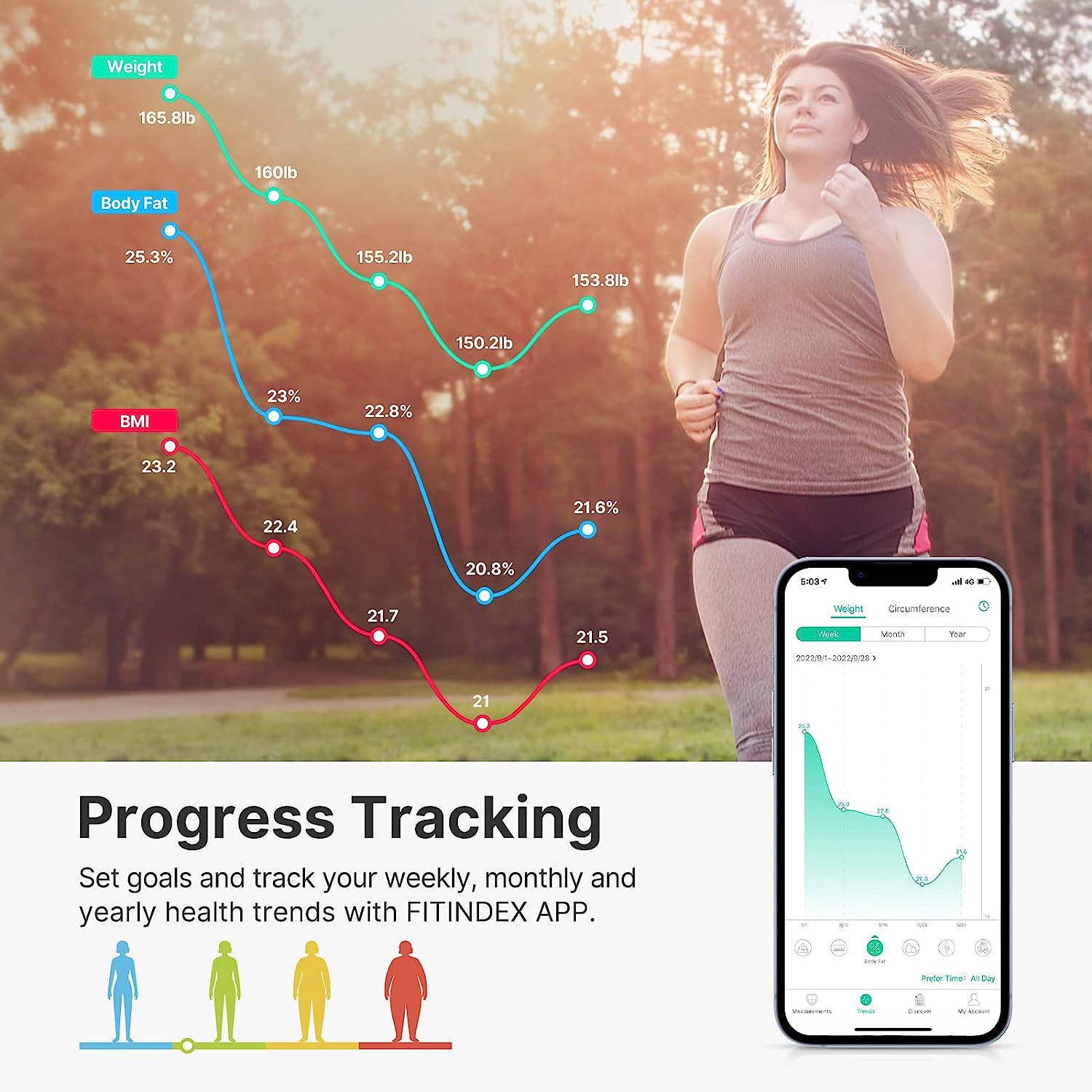 • Digital Scales for Body Weight and Fat: 13 body composition measurements including weight, body fat ratio, water, muscle mass, BMI, BMR, bone mass, and more. Fitindex body fat scale with smart app provides data reference and makes you know more data clearly about health conditions.