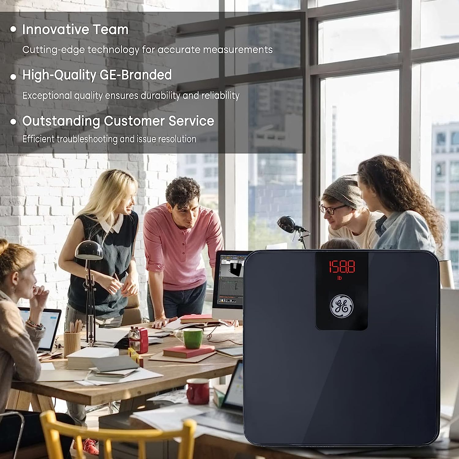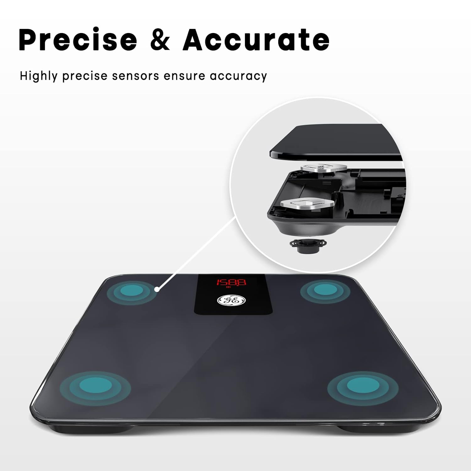 GE Scale for Body Weight Bathroom: Digital Scales Accurate, Smart Bluetooth Scale for Weight and BMI Electronic Weighing Scale for People, Black 400lb Capacity Bath Scale