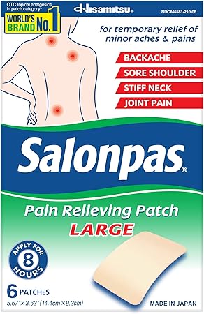 Salonpas Pain Relieving Patch, LARGE, 6 Count, for Back, Neck, Shoulder, Knee Pain and Muscle Soreness, 8 Hour Pain Relief