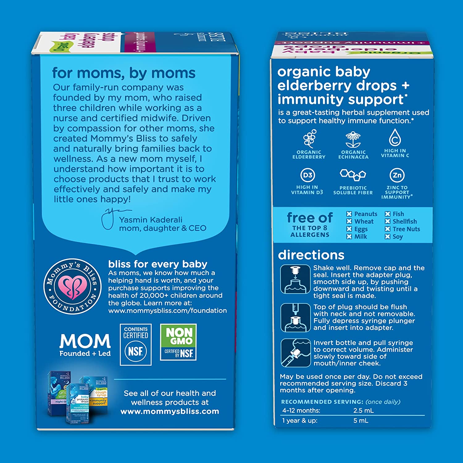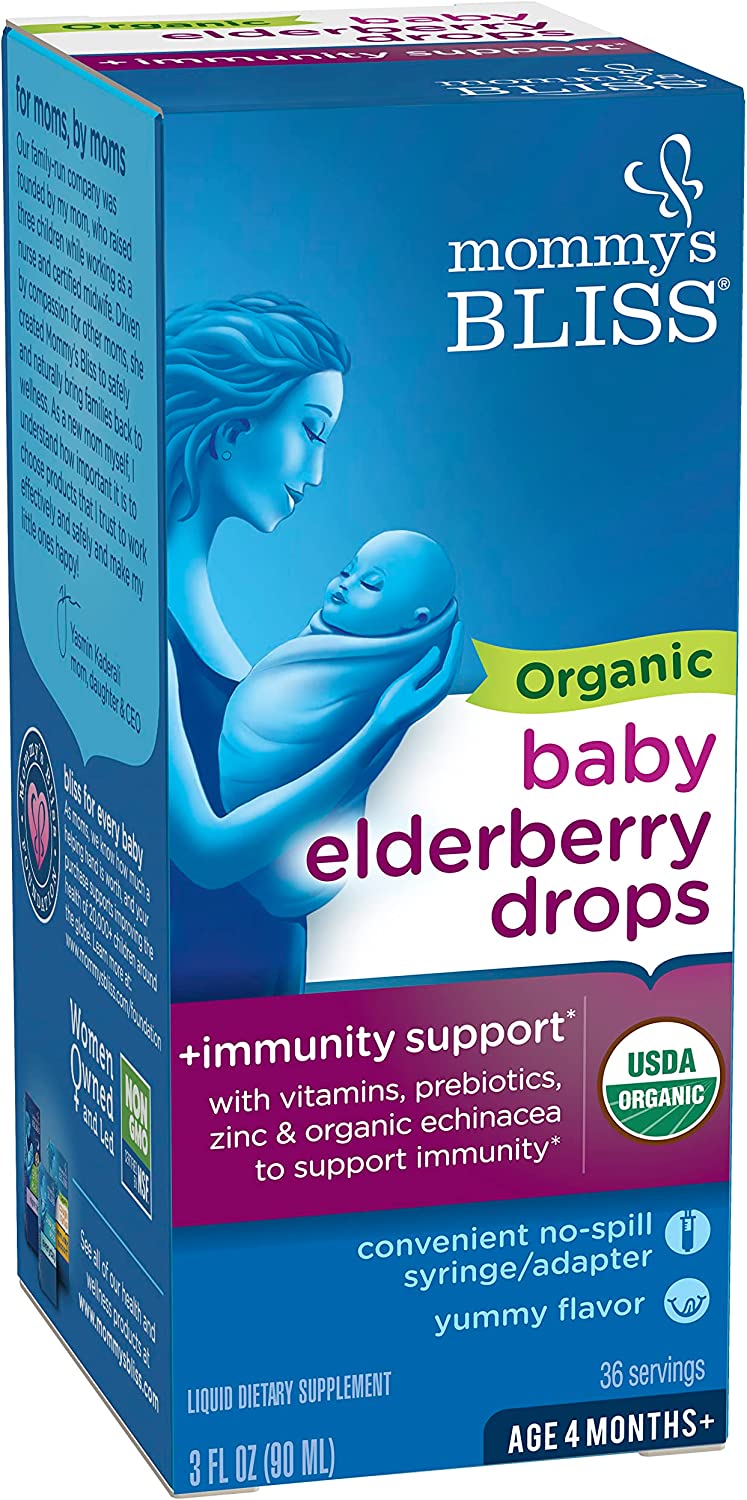 Organic Baby Elderberry Drops are packed with antioxidant-rich elderberry, zinc, and Vitamin C to help support healthy immune function, in a delicious flavor for babies, and include a convenient no-spill syringe/adaptor.