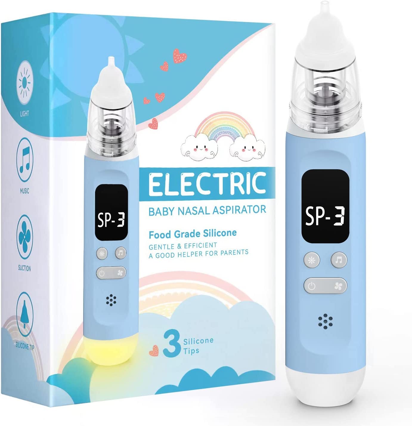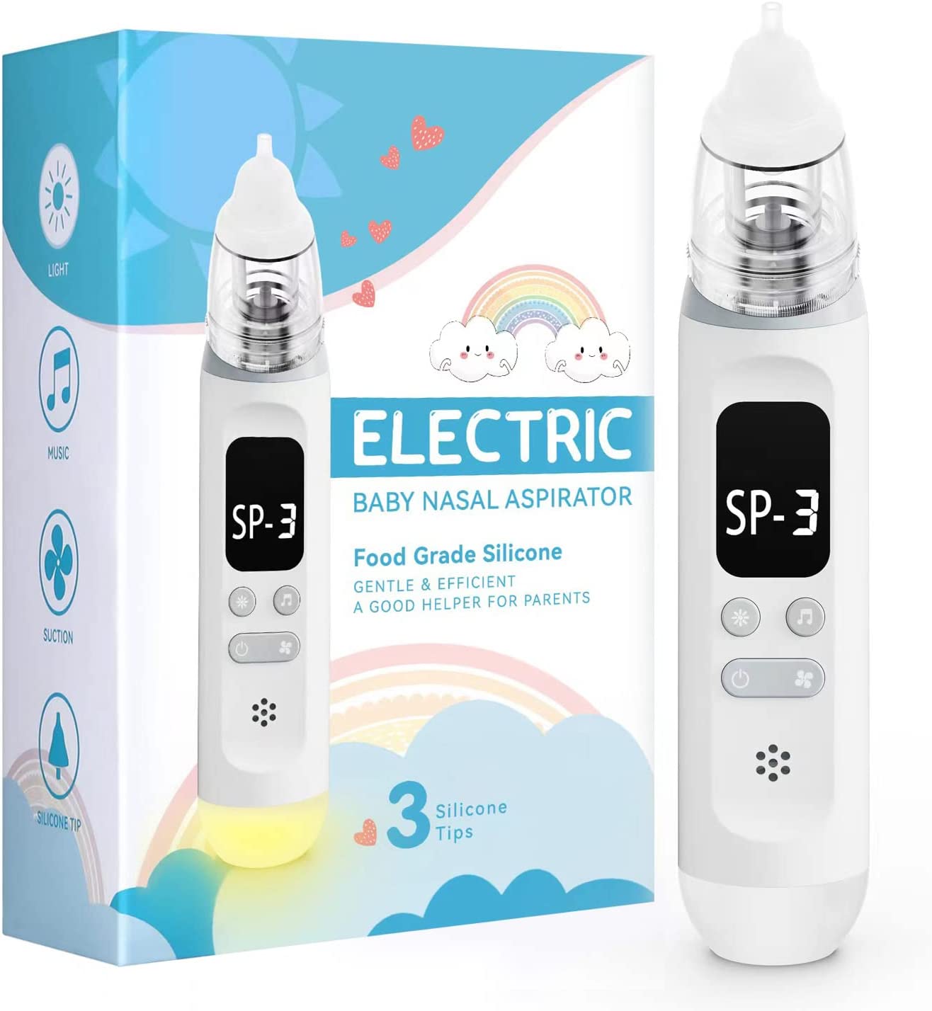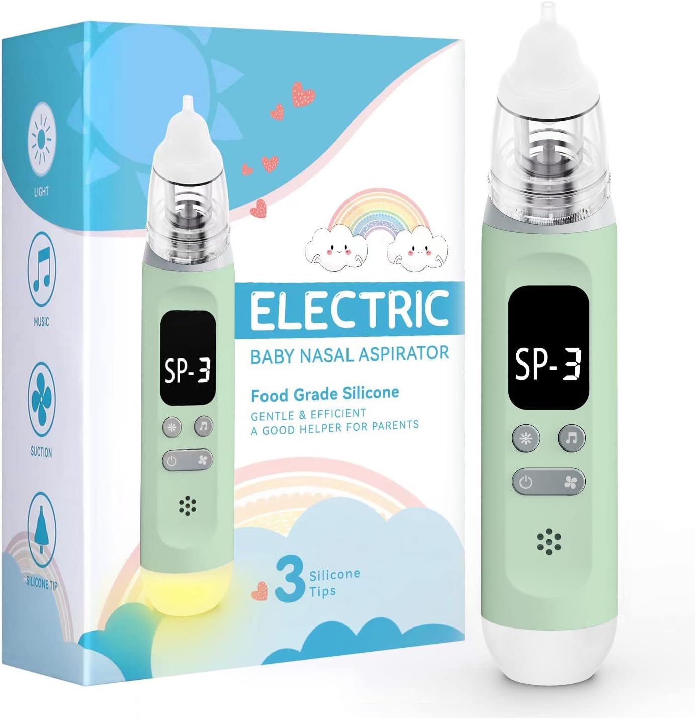 Nasal Aspirator for Baby, Electric Baby Nose Sucker with Adjustable 3 Levels Suction, Rechargeable Booger Sucker for Babies with 8 Light Modes and 3 Nursery Rhymes