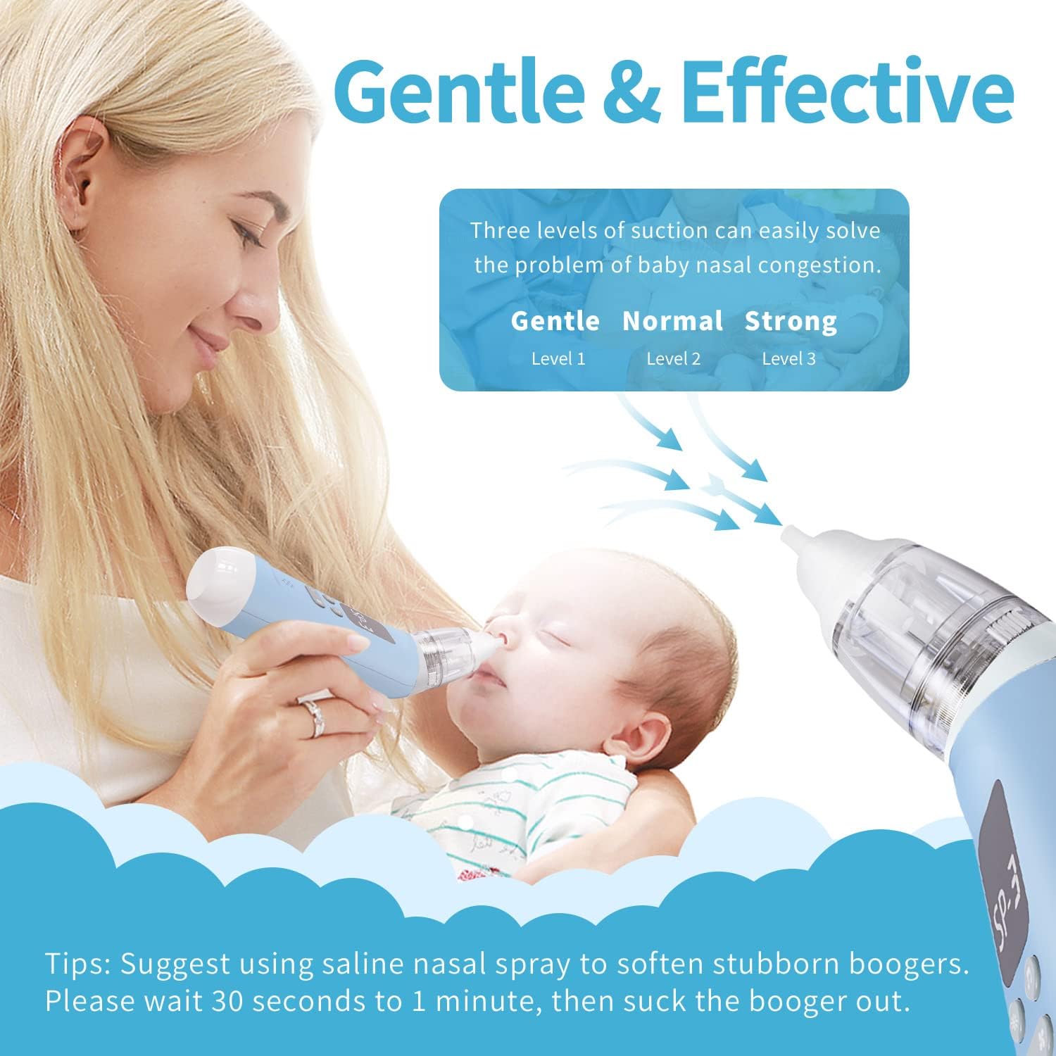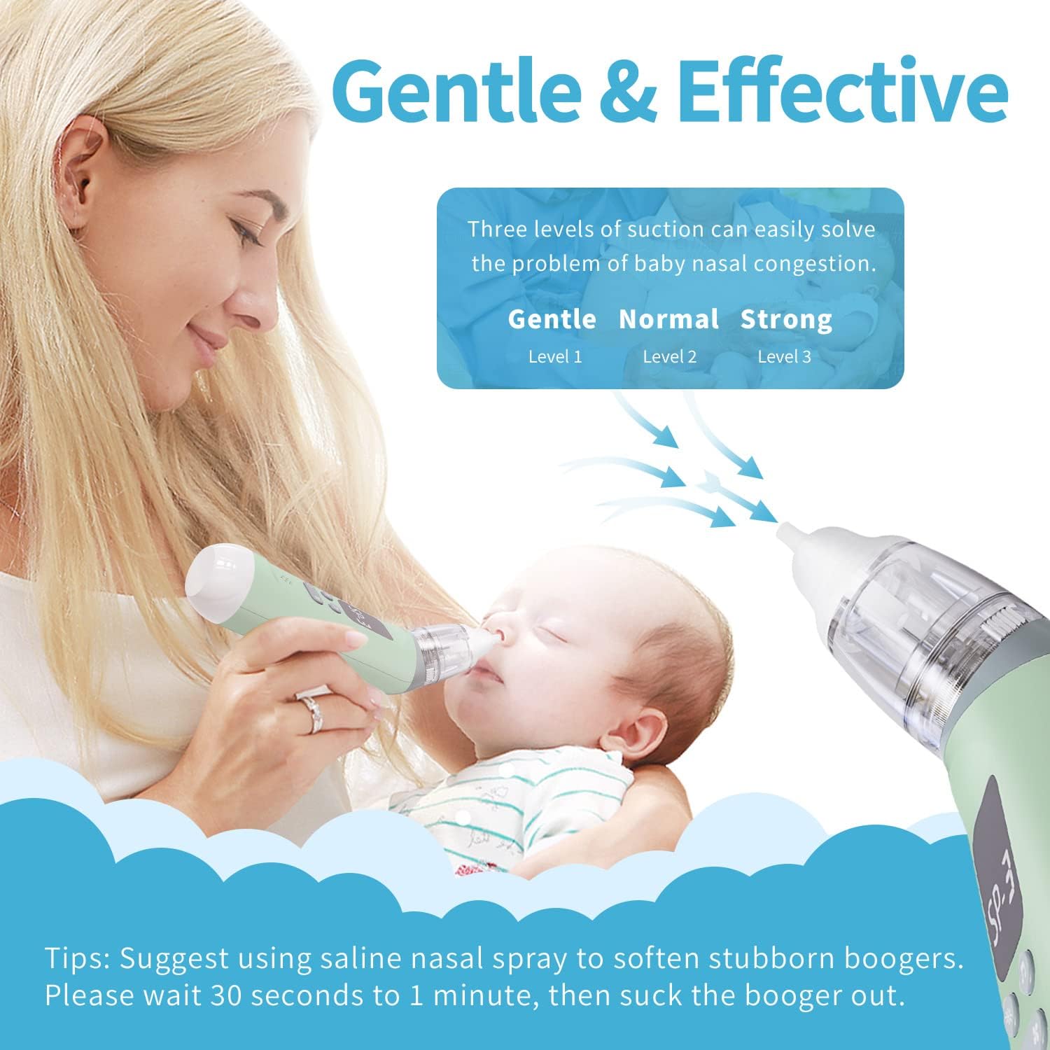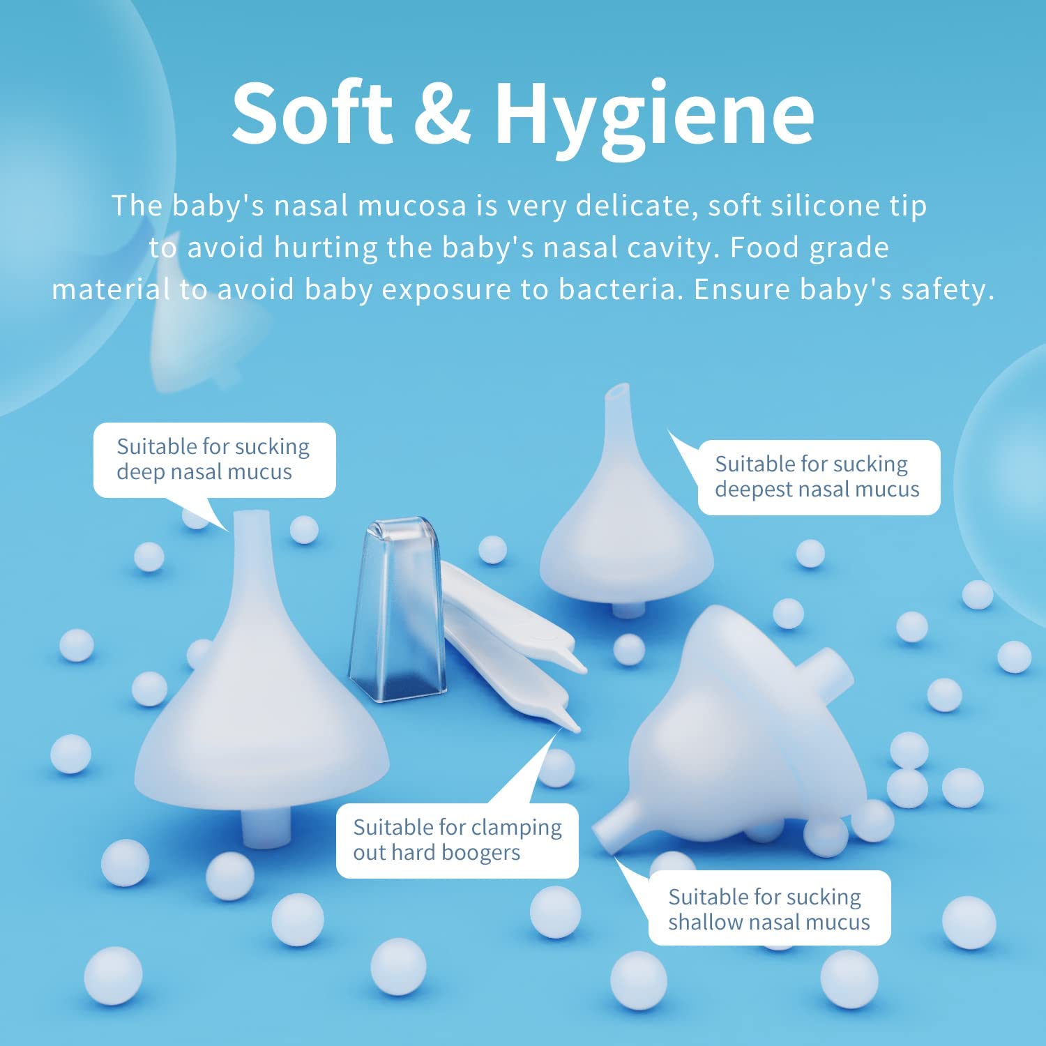 • [Food grade silicone] 3 different shapes of food-grade silicone tips, BPA and Latex-free. Soft and Hygiene. It prevents damage to the baby's delicate nasal mucus and prevents bacterial infections. It is suitable for babies of different ages. The gourd-shaped tip is suitable for newborns 0-2 years old. Funnel-shaped tips are suitable for kids 2-8 years old.