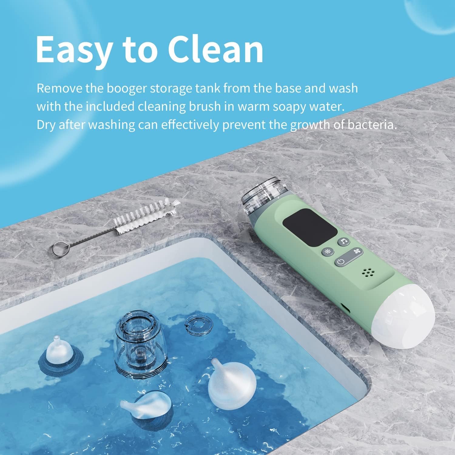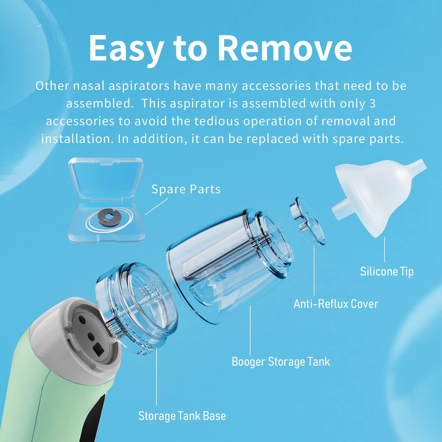 • [Easy to Remove & Clean] Booger storage tank only 3 accessories, only a simple installation to use. The storage tank is separated from the machine's air intake to prevent backflow. After use, you only need to remove the storage tank to wash and dry to completely avoid your toddler from being exposed to bacteria.