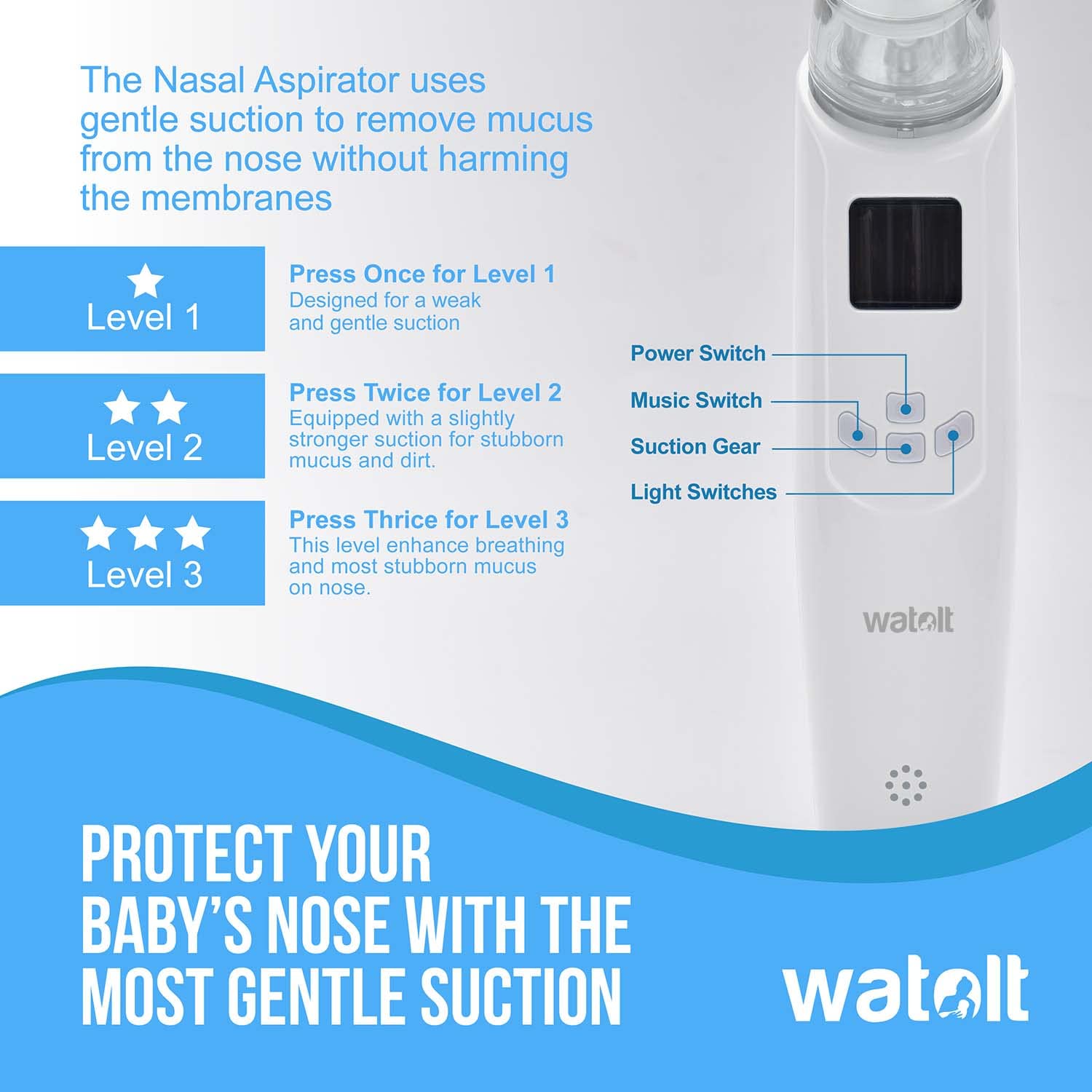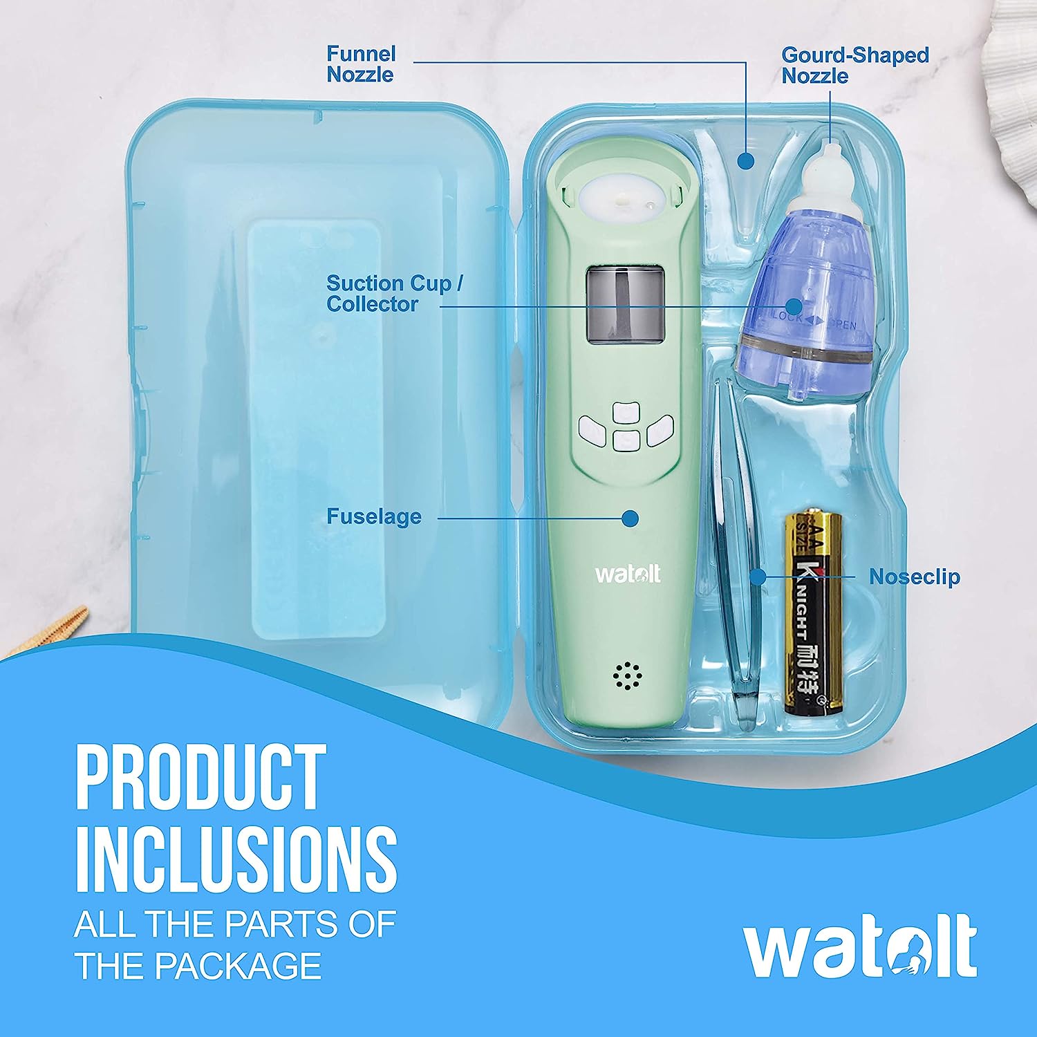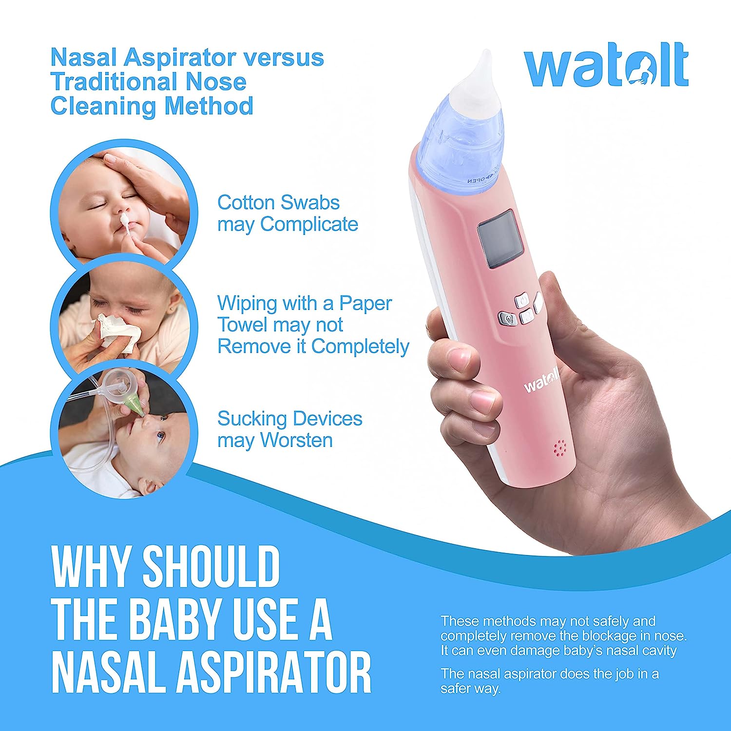 Watolt Baby Nasal Aspirator - Electric Nose Suction for Baby - Automatic Booger Sucker for Infants - Battery Powered Snot Mucus Remover for Kids Toddlers