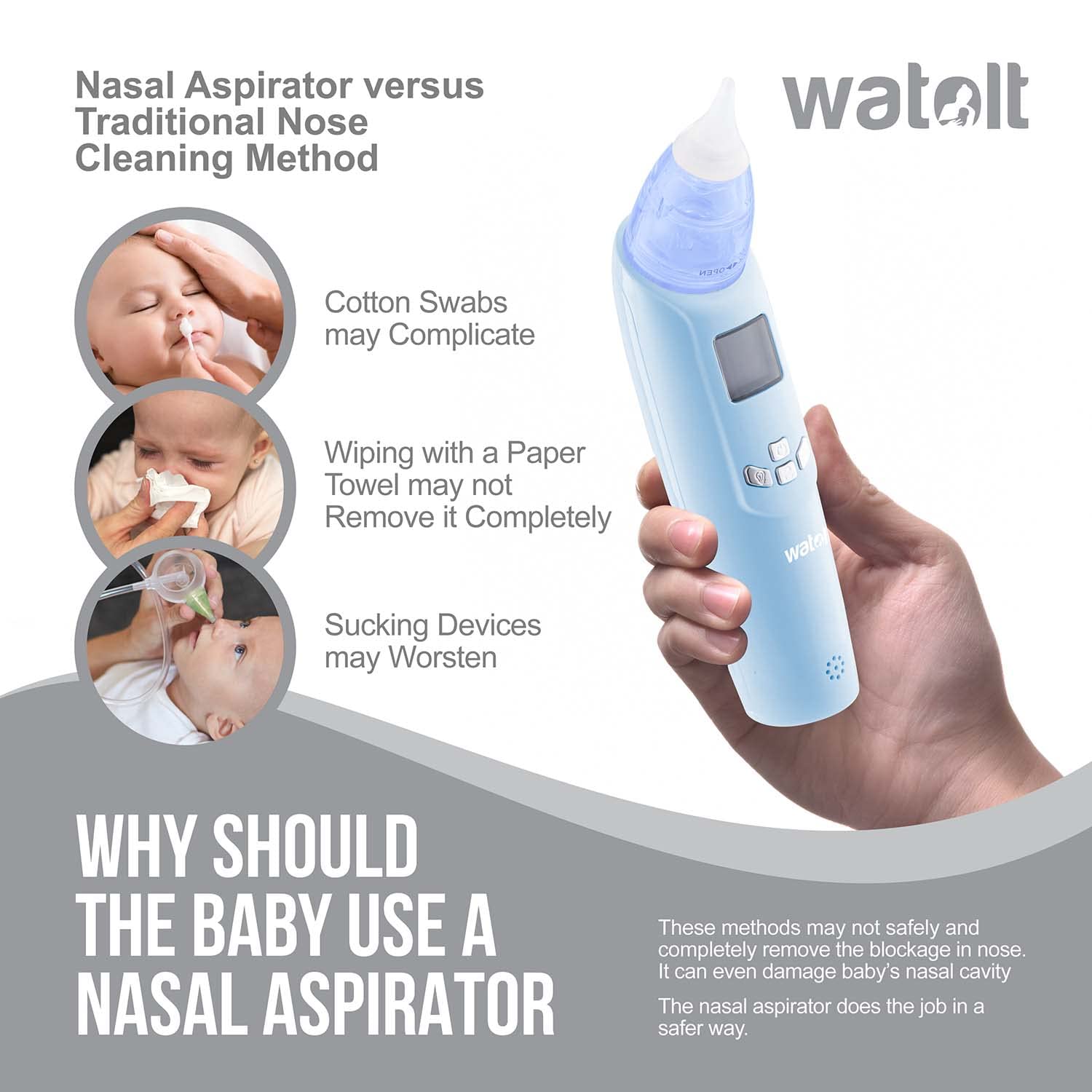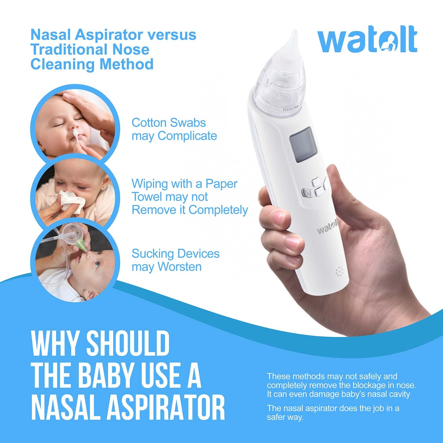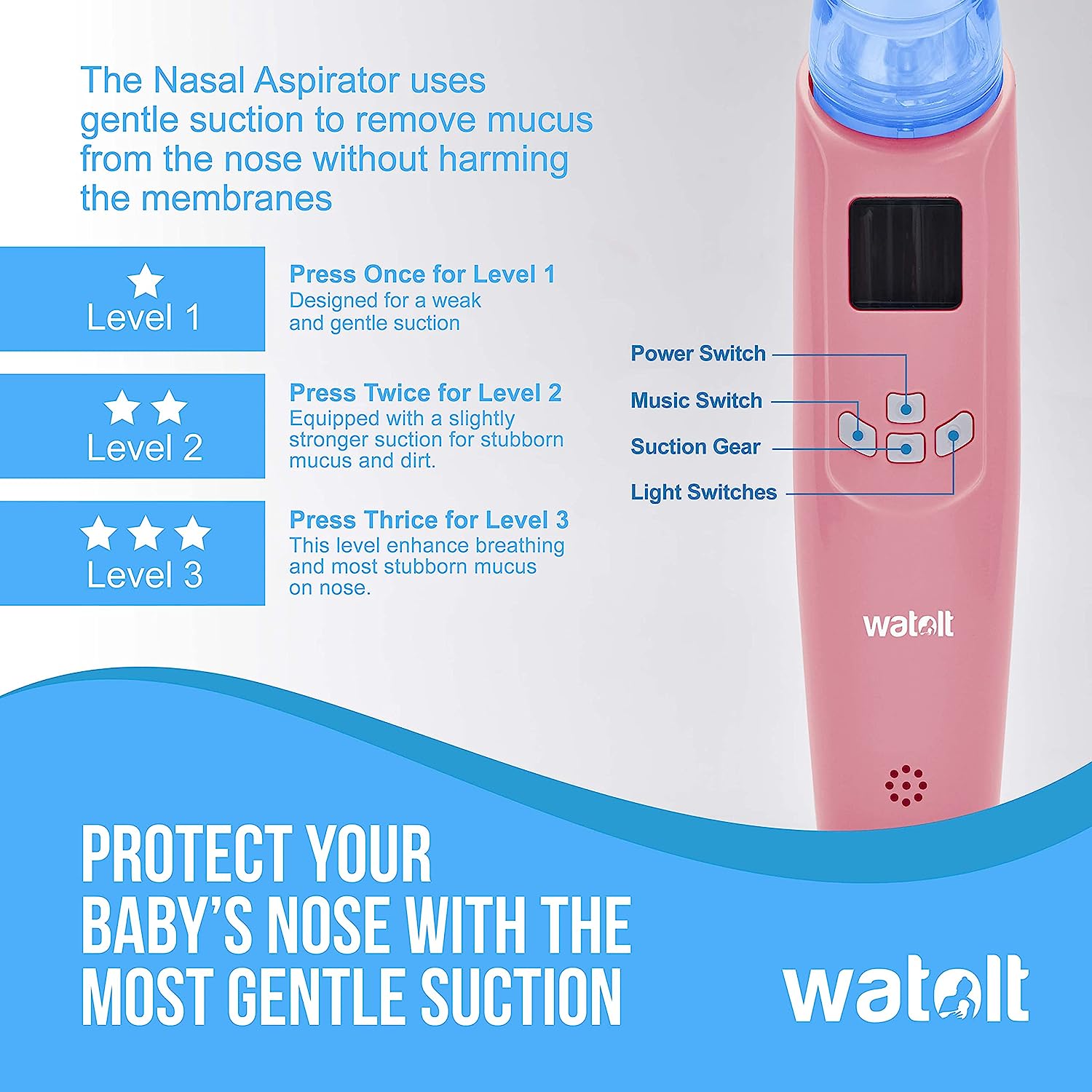 Watolt Baby Nasal Aspirator - Electric Nose Suction for Baby - Automatic Booger Sucker for Infants - Battery Powered Snot Mucus Remover for Kids Toddlers
