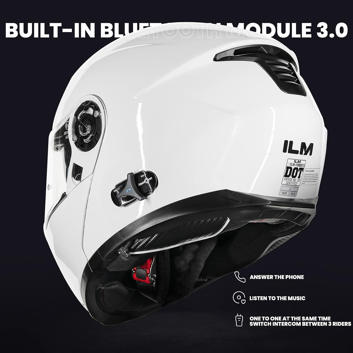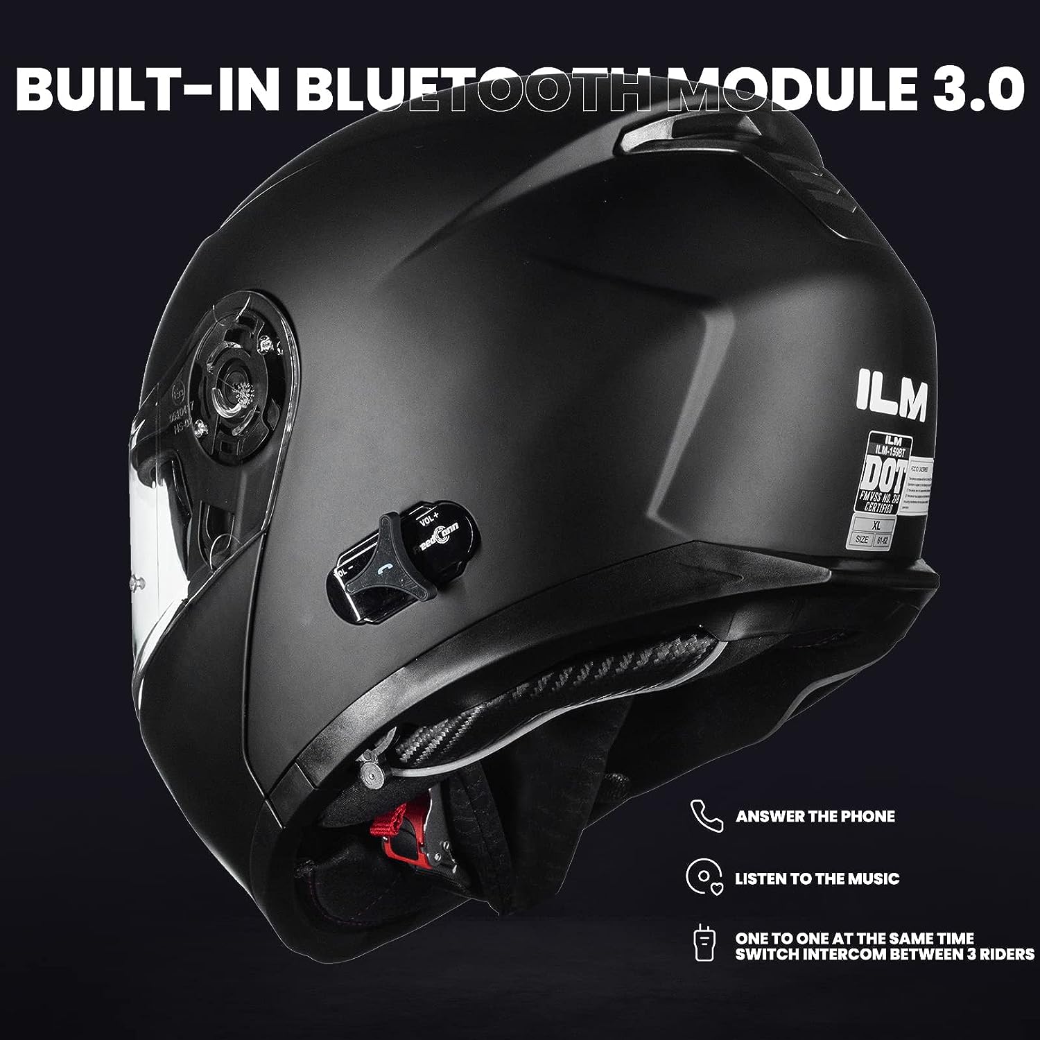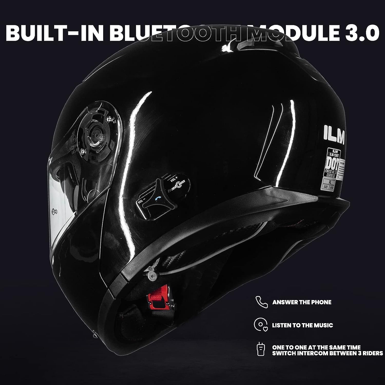 ILM Bluetooth Motorcycle Helmet Modular 2-3 Riders Intercom Flip up Full Face Dual Visor DOT Model 159BT