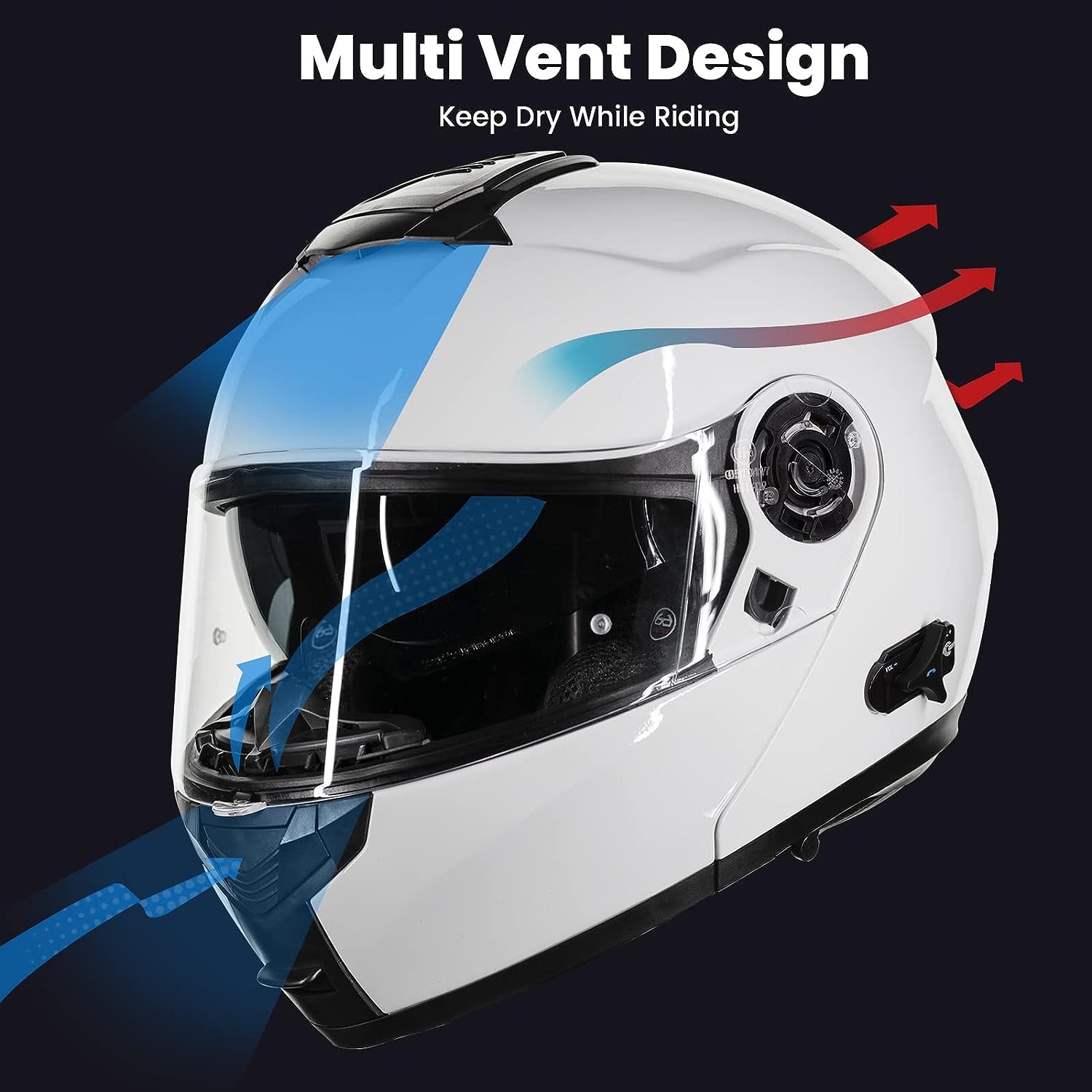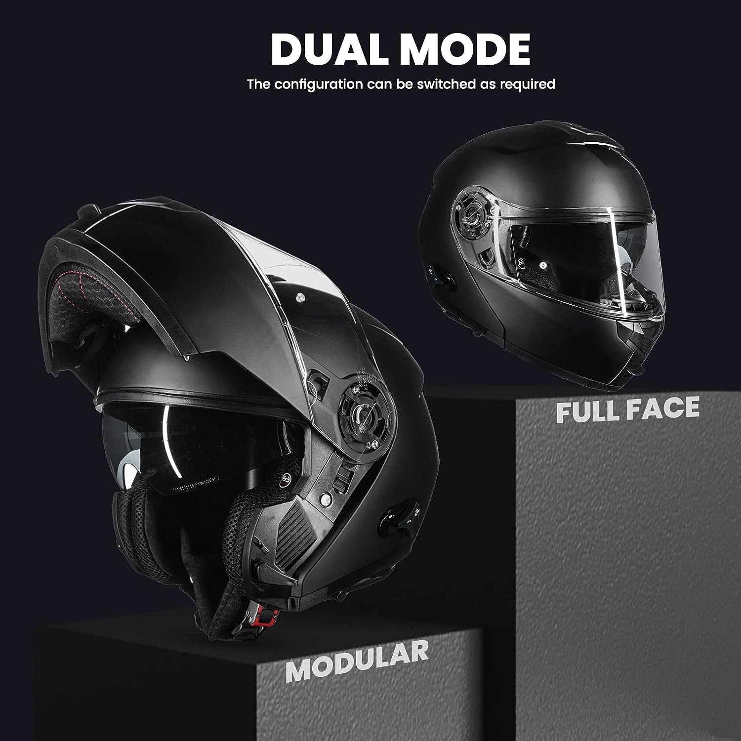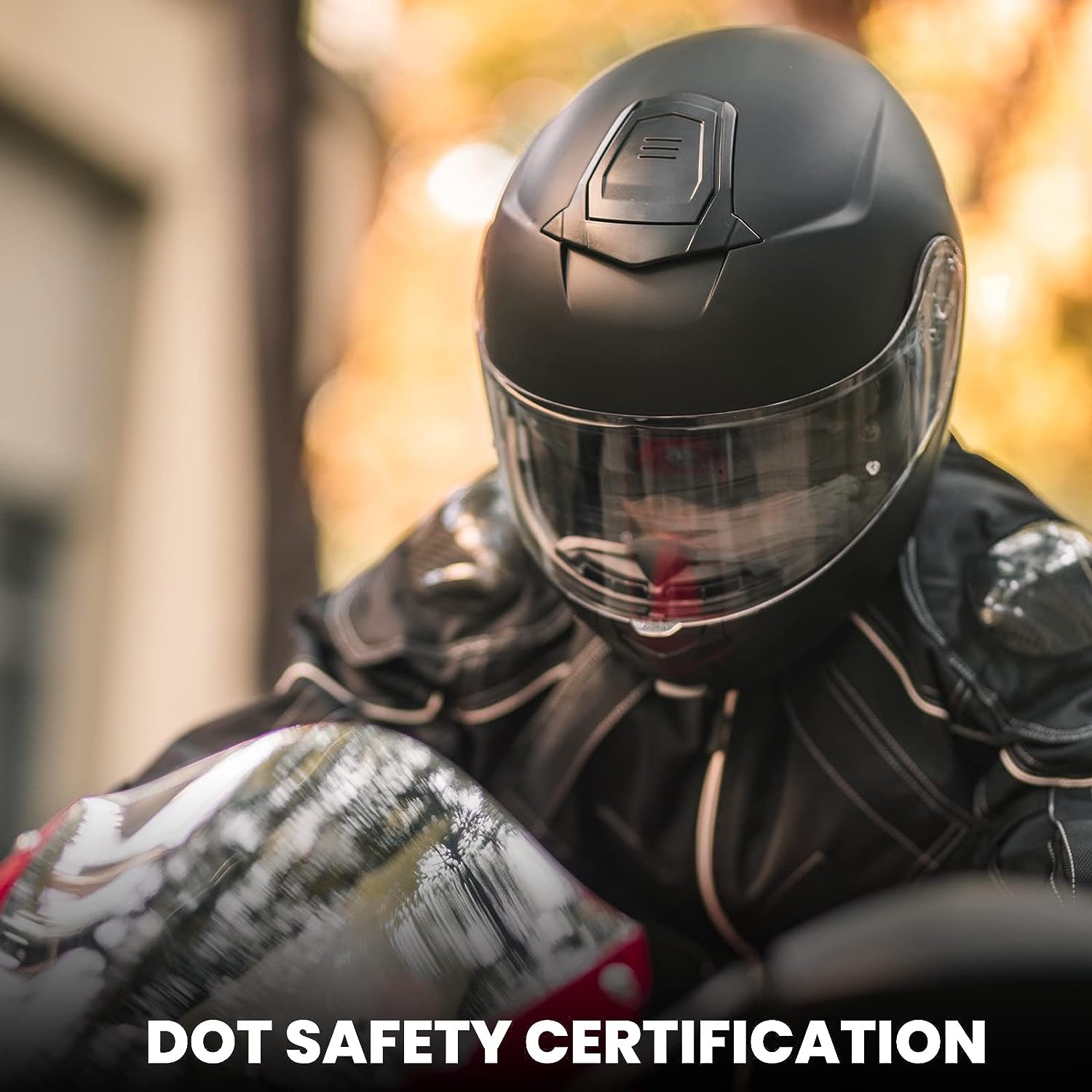 • DESIGN: DOT safety standard and high quality ABC shell with EPS liner. The flip design not only adds convenience, but also has catches for fixing the helmet, greatly increasing safety. Multiple vents for air circulation and make sure you can breathe fresh air.
