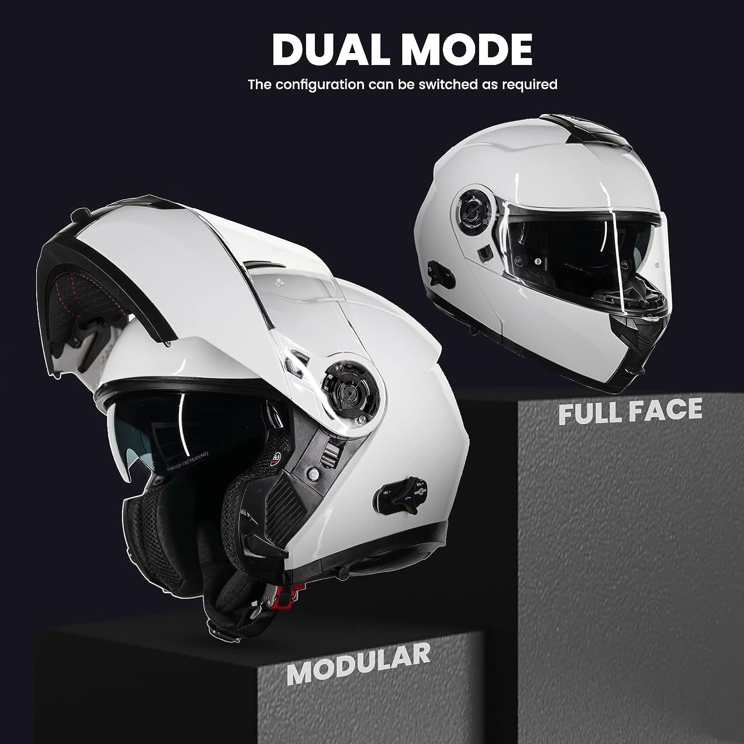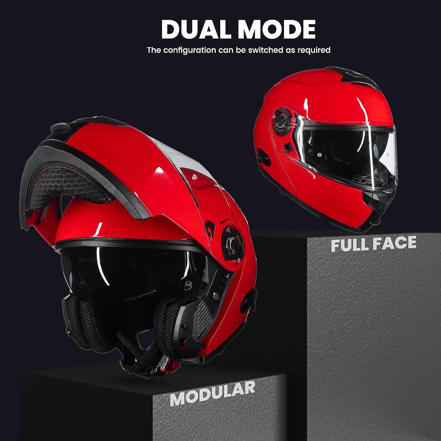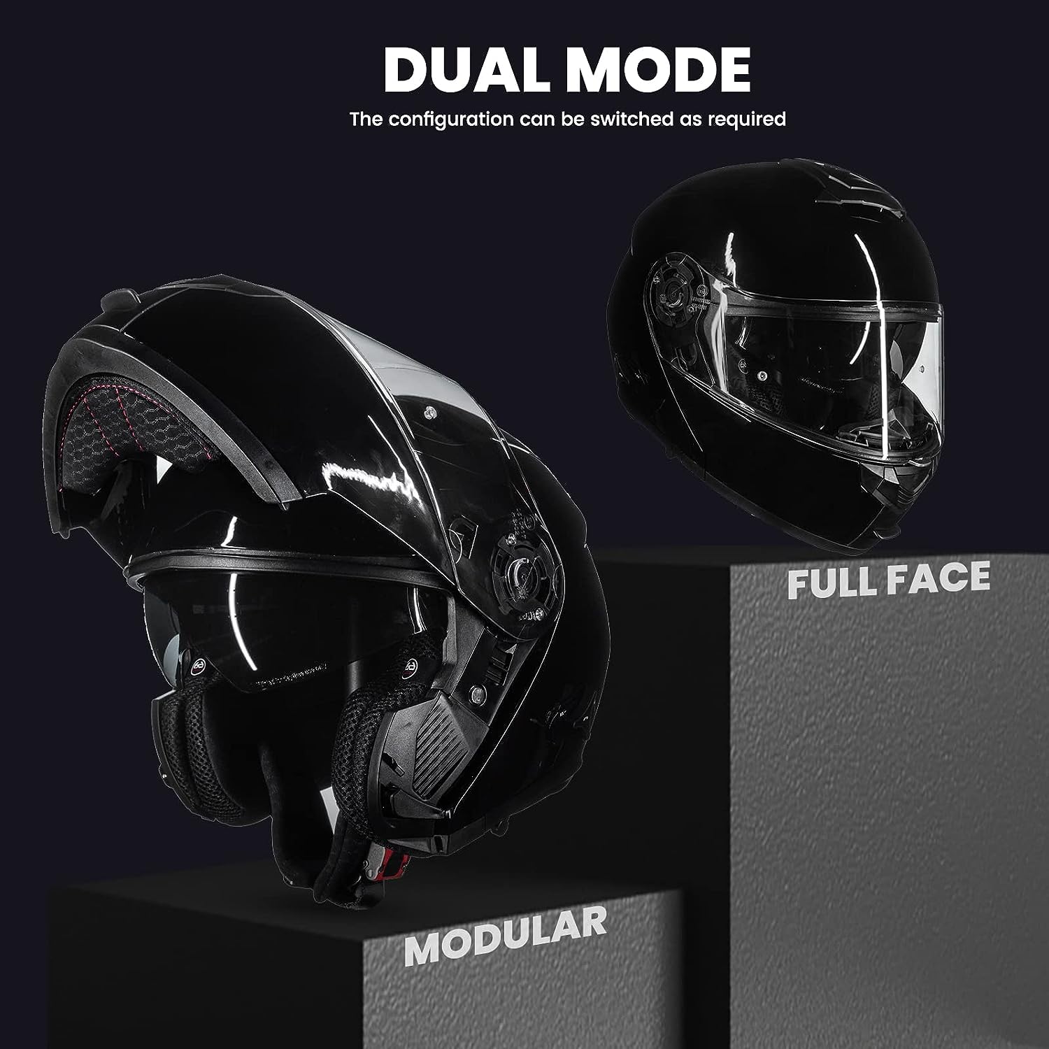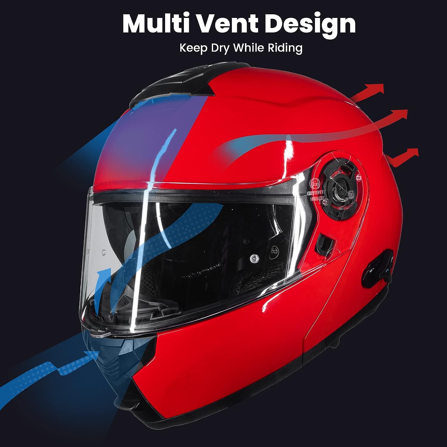 • DESIGN: DOT safety standard and high quality ABC shell with EPS liner. The flip design not only adds convenience, but also has catches for fixing the helmet, greatly increasing safety. Multiple vents for air circulation and make sure you can breathe fresh air.