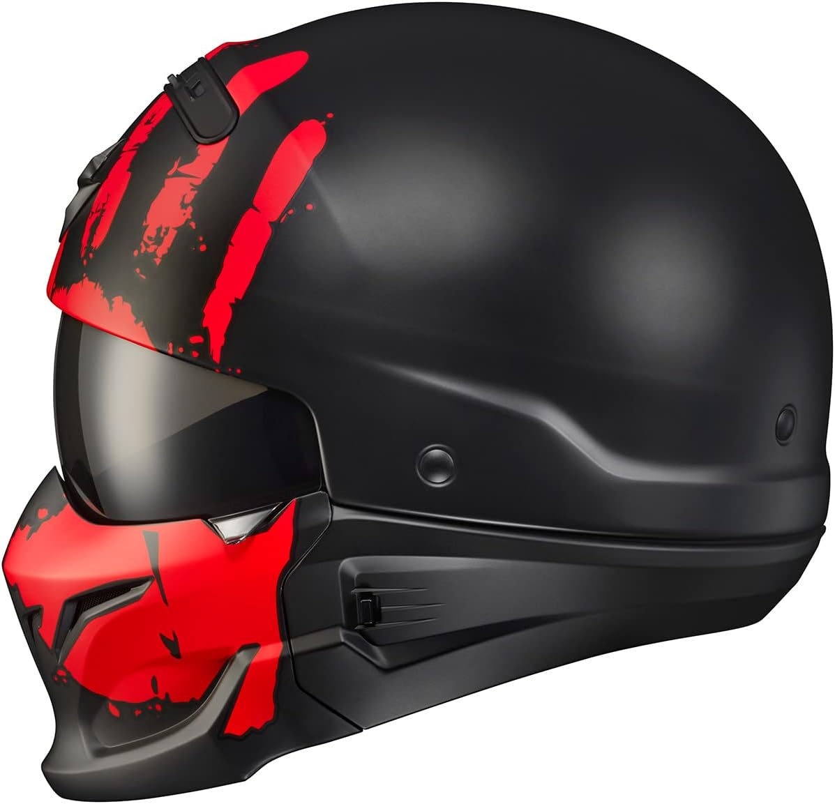 Radikales Design: Der verdeckte Helm, den wir einen perfekt guten Halbhelm gemacht haben und ihn "Bad Ass" gemacht haben, um die Norm zu stören. Dieses Radikale Design kann mit jeder Art von Fahrrad verwendet werden. Wir begannen mit einem halben Helm und haben eine integrierte herunterklappbare Sonnenblende zum Schutz vor Sonnenlicht hinzugefügt. Eine hintere Komfortmanschette ermöglicht es Ihnen, den Helm in einen 3/4-offenen Helm zu verwandeln und dann die mitgelieferte Frontmaske zu befestigen. Sie haben einen aggressiven "Bad Ass" aussehenden Helm. Leistungsmerkmale: Fortschrittliche LG-Polycarbonat-Schale: exklusiv von Scorpion entwickelt. Unsere branchenführende Polycarbonat-Schale wurde entwickelt, um Gewicht zu minimieren und Stöße zu verteilen. Dual Density Eps Aero-Tuned Belüftungssystem. Ever Clear Speed View, Drop-Down-Sonnenblende: einziehbare, getönte Sonnenblende, die die Augenbelastung sofort bei unterschiedlichen Lichtverhältnissen lindert. Ever Clear Beschichtung ist auf beiden Seiten für eine beschlagfreie Fahrt. Kommt mit Dark Smoke installiert und einem zusätzlichen klaren Visier für nächtliche Fahrten. Antimikrobielles Komfortfutter: Kwikwick Ii antimikrobielles Gewebe hält Sie kühl und trocken bei warmem Wetter, warm bei kühlem Wetter, Futter ist leicht abnehmbar und waschbar. Abnehmbare hintere Komforthülse im Lieferumfang enthalten, abnehmbare Frontmaske mit Neodym-Magneten, Doppel-D-Ring-Kinnriemen-System, Block-Off-Platten für den Einsatz im 3/4-Modus mit Punkt-Zulassung, 5 Jahre Garantie, Größen: XS – 3XL.