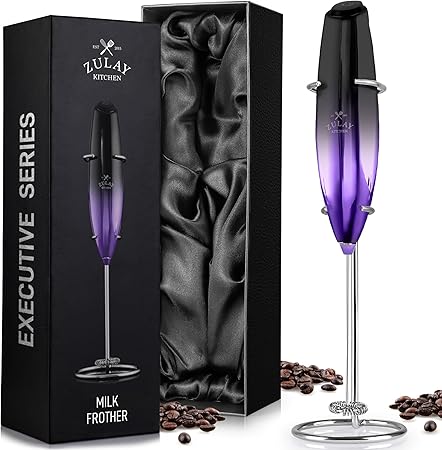Zulay Executive Series Ultra Premium Gift Milk Frother For Coffee with Deluxe, Radiant Finish - Coffee Frother Handheld Foam Maker - Electric Milk Frother Handheld For Lattes Premium UV Galaxy