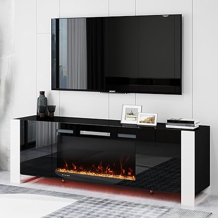 70" TV Stand for TVs Up to 80", Entertainment Center with 36" Electric Fireplace, Modern TV Console Table with Remote Control, Storage Cabinet Black